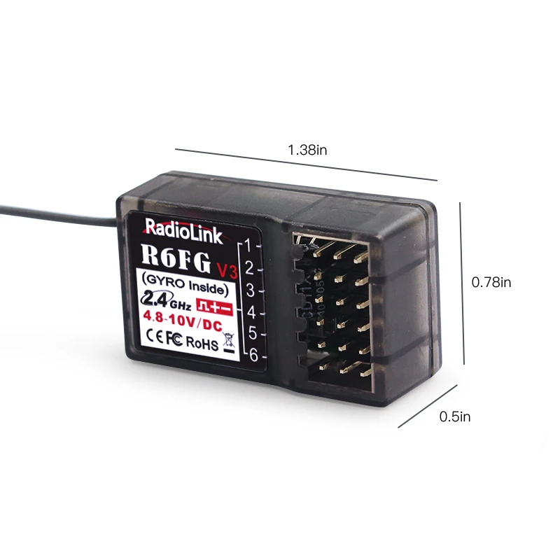 Отличная защита от помех: псевдо случайный алгоритм FHSS коммуникационная технология делает R6FG стабильным сигналом и. Выдающийся диапазон более 1300 футов (400 метров).Встроенный гироскоп: Встроенный гироскоп может держать автомобиль в прямой линии, а чувствительность гироскопа может регулироваться передатчиком, который подходит для дрейфующих и дорожных автомобилей.Превосходное быстрое реагирование: коэффициент высокого разрешения 4096, стабильный выход сигнала для обеспечения быстрого отклика для рок-гусеничного, грузовика, багги, дрейфующих и т. д.Компактный корпус: Малый размер эффективно экономит место и хорошо работает для большинства радиоуправляемых автомобилей.Простая привязка: простая в использовании Кнопка привязки, только 1 секунда для привязки с вашим радио RC4GS/RC4GS V2/RC6GS V2/RC6GS/T8S/T8FB.Внимание: R6FG по умолчанию не включал функцию гироскопа. Убедитесь, что R6FG не двигается при включении, потому что R6FG будет выполнять самопроверку.