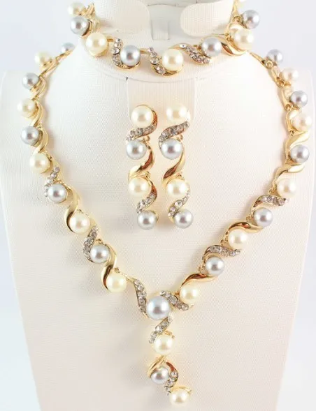 Бесплатная доставка Позолоченные прозрачные вечерние жемчужные ожерелья, модные жемчужные женские свадебные ювелирные наборыUS $10,99/Набор |