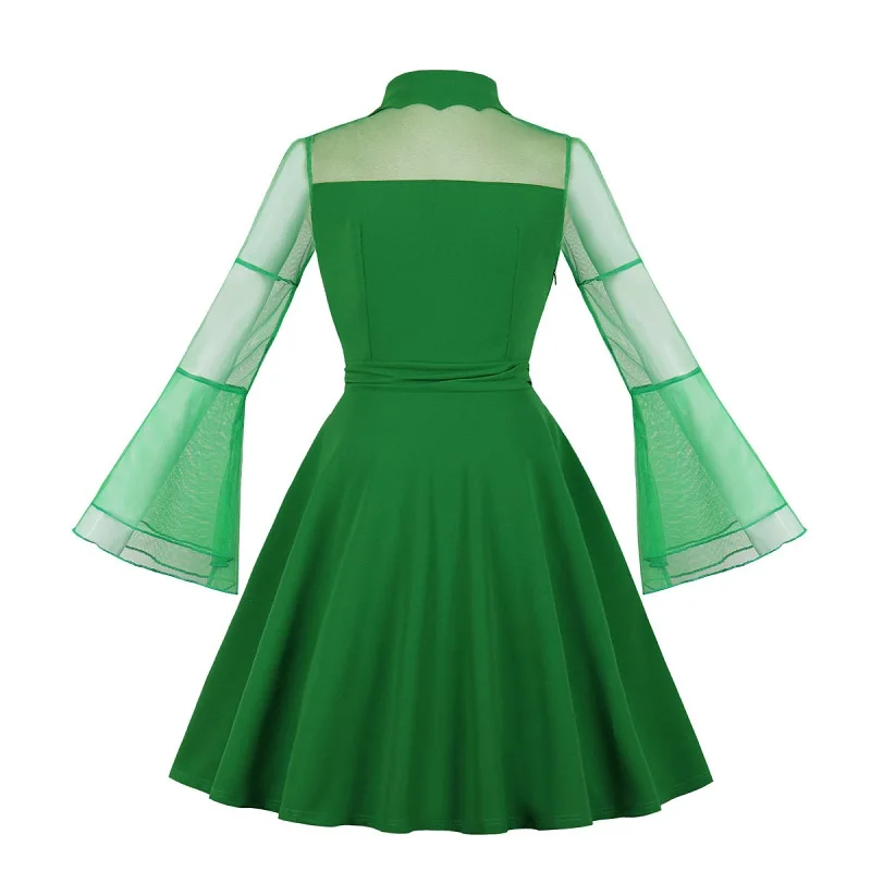Женское мини-платье в стиле панк, готика, Осеннее черное Сетчатое лоскутное Прозрачное платье с расклешенными рукавами, Драпированное элегантное вечернее короткое платье большого размера, Прямая поставка