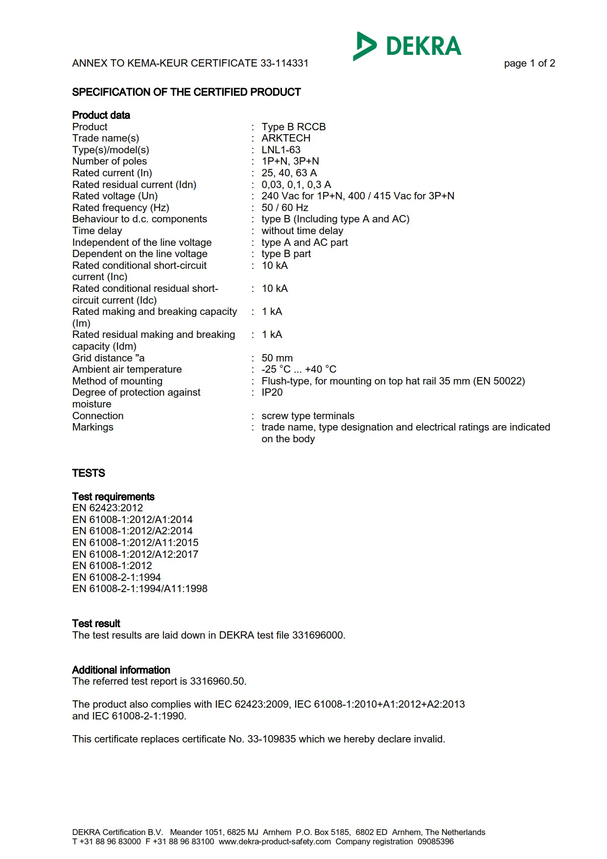 IEC/EN 61008-1 + IEC/EN62423