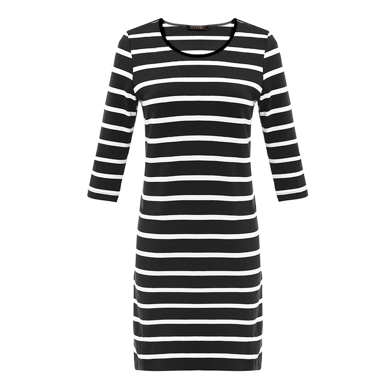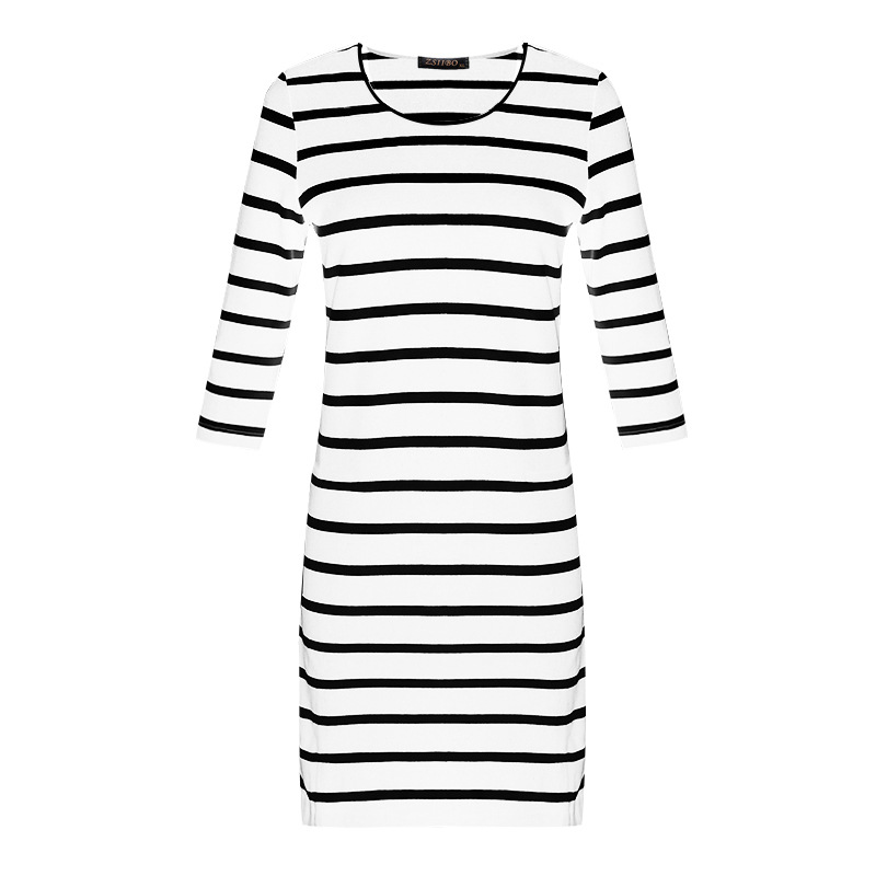 Одинаковая аспект 2: Платье в черно-белую полоску с плоской подошвой придает сладкую и женственную атмосферу, особенно острый носок, не только высокий и очень модный, с Изысканная сумка, легко носить хипстер.
