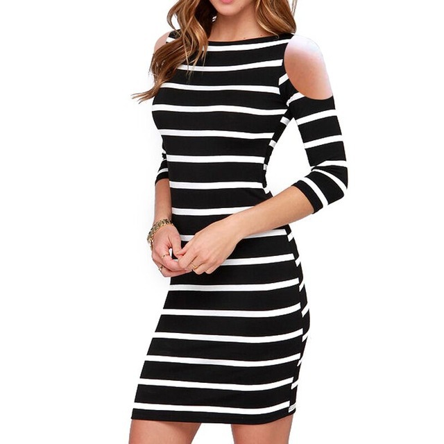 Одинаковая аспект 4: Платье в черно-белую полоску на высоком каблуке является очень темпераментным, даже самые базовые черные остроконечные туфли на высоком каблуке могут носить сильную газовую область, модные женщины могут попробовать.