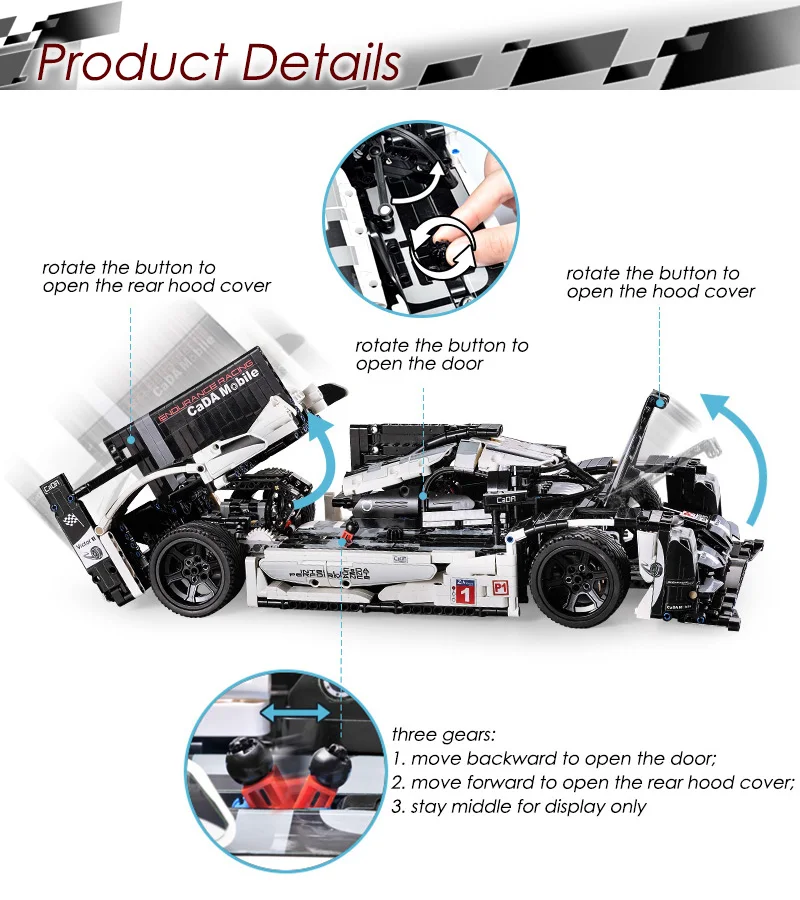 1. Версия RC (1) 1586 штук кирпича (2) инструкция, наклейка (3) двигатели, светильник, пульт дистанционного управления, перезаряжаемая литиевая батарея. 2. Версия без RC (1) 1586 штук кирпича (2) инструкция, наклейка