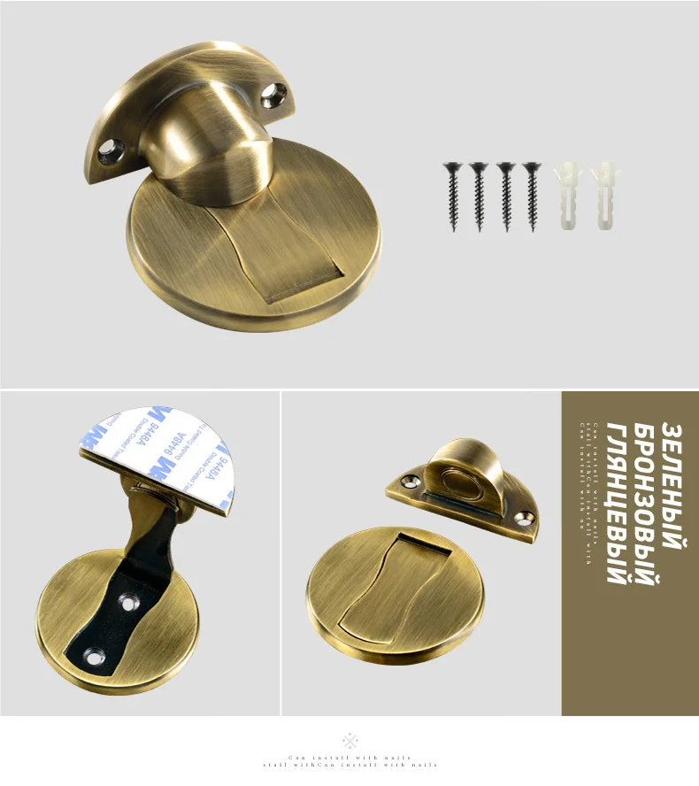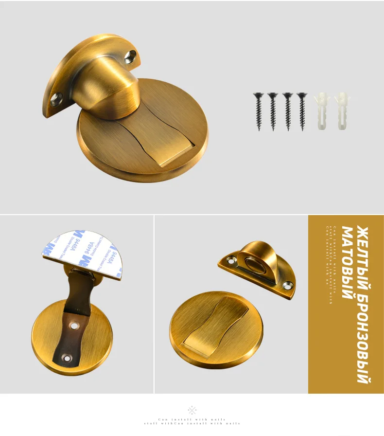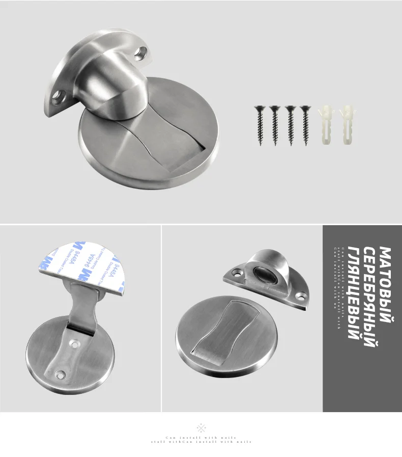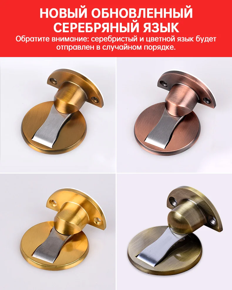 Особенности: Обновленная версия, твердая база, отверстия для потайной винт. Для: гостиной, спальни, туалета Из-за влажности и температуры в разных странах. 3 м наклейки может быть влажной и не достаточно стабильным. Рекомендуется, чтобы вы винт его на пол. Спасибо за понимание. Технические характеристики: Материал: нержавеющая сталь Размер: как показано на изображении Цвет: матовое серебро, матовое золото, желтая бронза, зеленая бронза, красная бронза Тип: дверные упоры Посылка содержание: 1 х дверной стоп