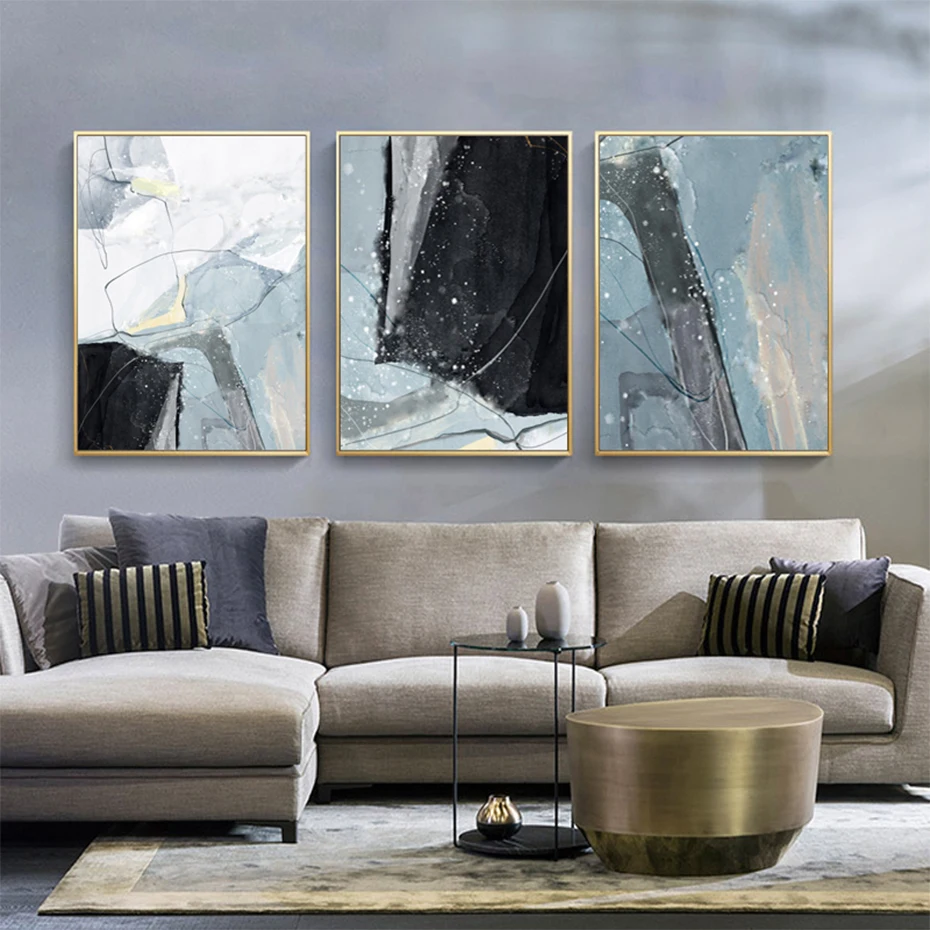 Абстрактные мраморные картины на холсте, светильник, синий постер, скандинавские поп-рисунки на холсте, для гостиной, офиса, домашнего декора