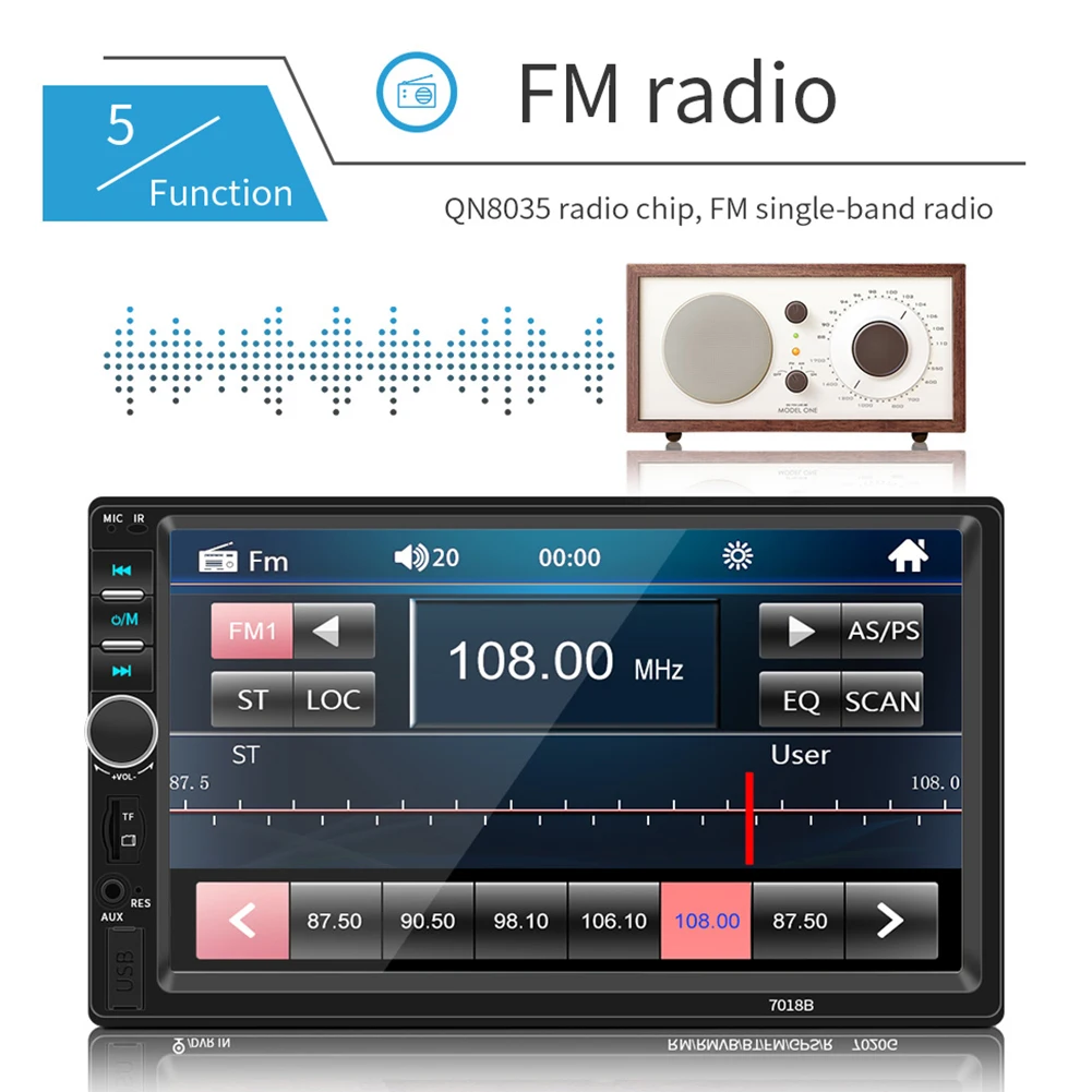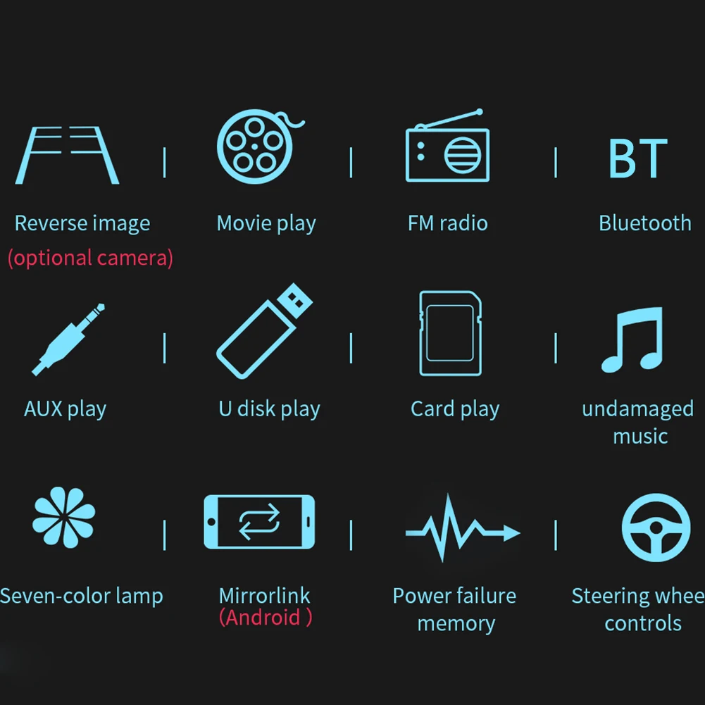7 "двойной 2 DIN Автомобильный MP5 MP3 плеер Bluetooth Сенсорный экран стерео радио камера Особенности: Этот с самым современным технологическим зеркалом. Вы можете связать свой телефон (только Android) с воспроизведением через usb-кабель. Затем вы можете прикоснуться к плееру, чтобы контролировать свой телефон! 1. 7 дюймов 2 Din HD автомобильное радио MP5 плеер с цифровым емкостным сенсорным экраном. 2. Поддержка Bluetooth аудио музыки и громкой связи. 3. Поддержка функции радио и встроенный вход Aux. 4. Поддержка функции ввода камеры заднего вида. 5. 24 часа цифровой дисплей часы и дата. 6. Поддержка TF карты (до 32 Гб) слот и стандартный USB интерфейс. 7. Может заряжать мобильный телефон или другие usb-устройства. 8. Поддержка мультипэ настройки звуковых эффектов. 9. Красочные подсветки кнопки питания для украшения в вашем автомобиле. Технические характеристики: Основная функция: MP5,USB/TF интерфейс, FM,Bluetooth, вход задней камеры, Aux In Размер экрана: 7 дюймов Разрешение экрана: 1024*600 пикселей Языки меню OSD: английский, китайский, испанский, французский, русский, немецкий, итальянский и португальский Формат видео: RMVB/RM/FLV/3GP/MPEG/DIVX/XVID/DAT/VOB/AVI/MP4 Формат аудио: MP3/WMA/OGG/APE/AAC/FLAC/WAV Формат изображения: JPG Выходная мощность усилителя/Кол-во канала. : 45 Вт * 4 Интерфейс: USB/TF/AUX IN Входное напряжение: 12 В Версия Bluetooth: V3.0 Пароль сопряжения Bluetooth: "0000" Размер установки: 180 мм * 103 мм (7,08 дюйма * 4,06 дюйма) Посылка список: 1 * хост мультимедийного плеера 1 * кабель питания 1 * пульт дистанционного управления 1 * Руководство пользователя на английском языке 1 * Камера заднего вида (опционально) Примечание: 1. Этот Автомобильный мультимедийный плеер совместим со всеми автомобилями. Пожалуйста, проверьте размер изделия. 2. Установка требует небольшого знания электронных продуктов. Пожалуйста, установите его с помощью профессионала. 3. Если вы не уверены, подходит ли эта модель для вашего автомобиля или нет, вы можете связаться с нашей службой поддержки клиентов.