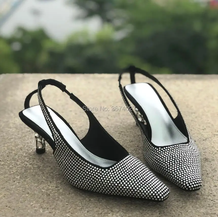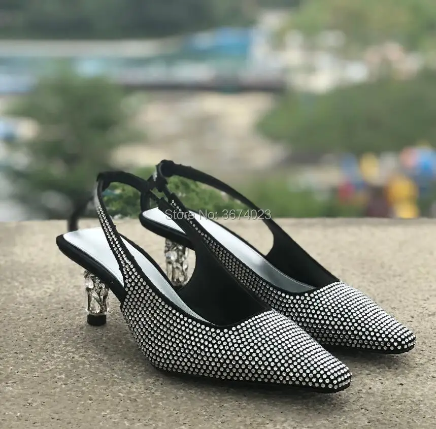 Название товара: Qianruiti 2019 новые женские сандалии со стразами бриллиантами квадратный носок на каблуке «рюмочка»; Стразы; Туфли-лодочки сандалии под платье, для вечеринки взлетно-посадочной полосы