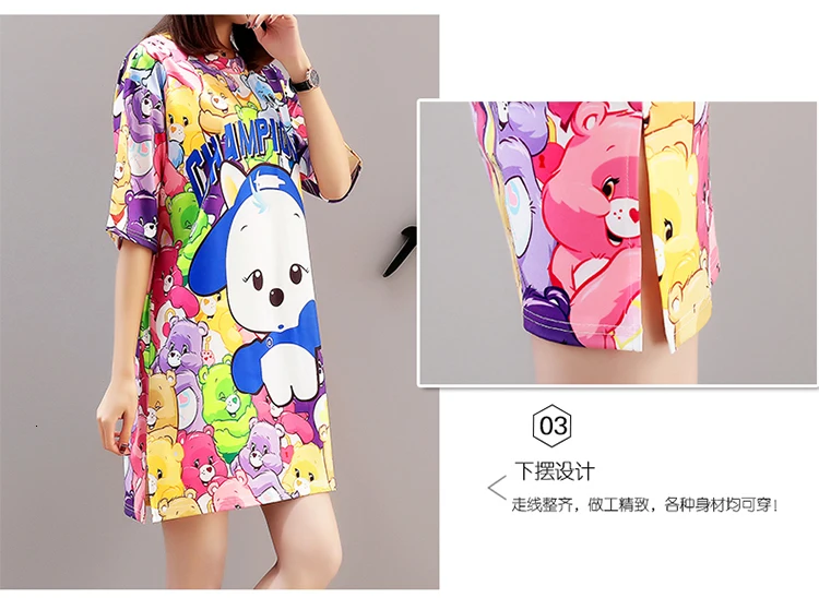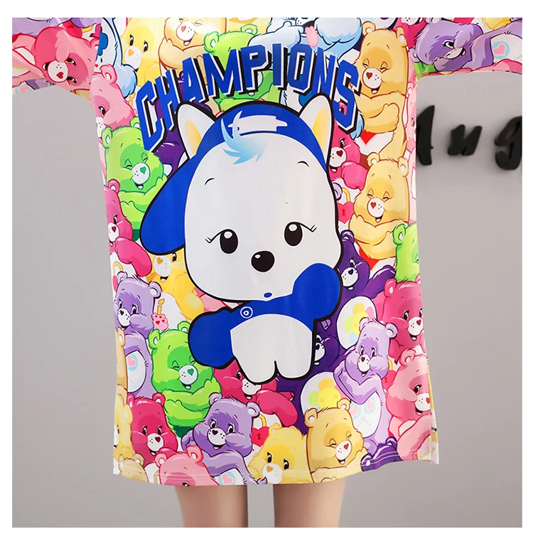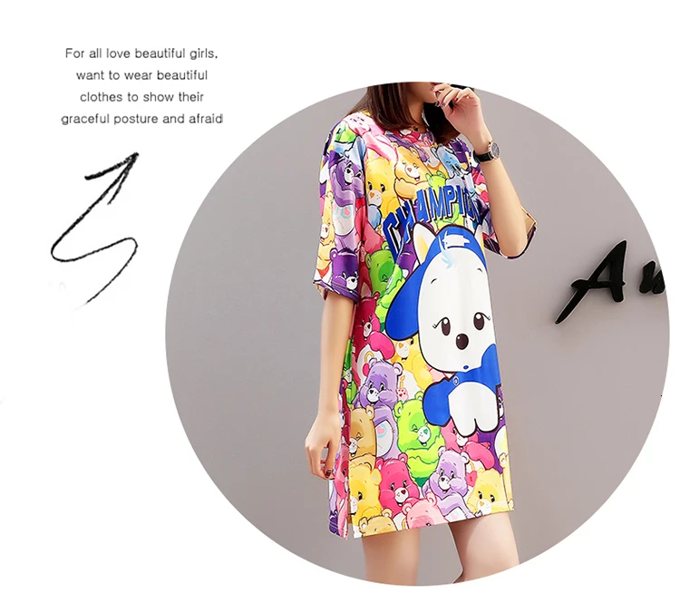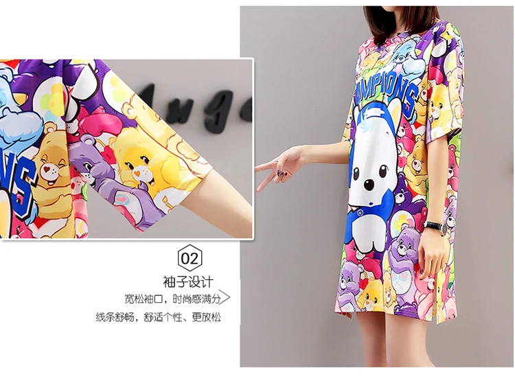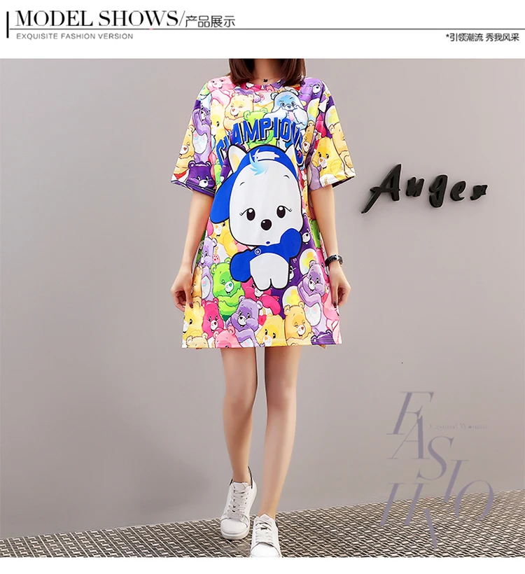 QING MO платье с принтом из мультфильма женское негабаритное платье-футболка летнее Повседневное платье с коротким рукавом женские мини-платья свободные топы