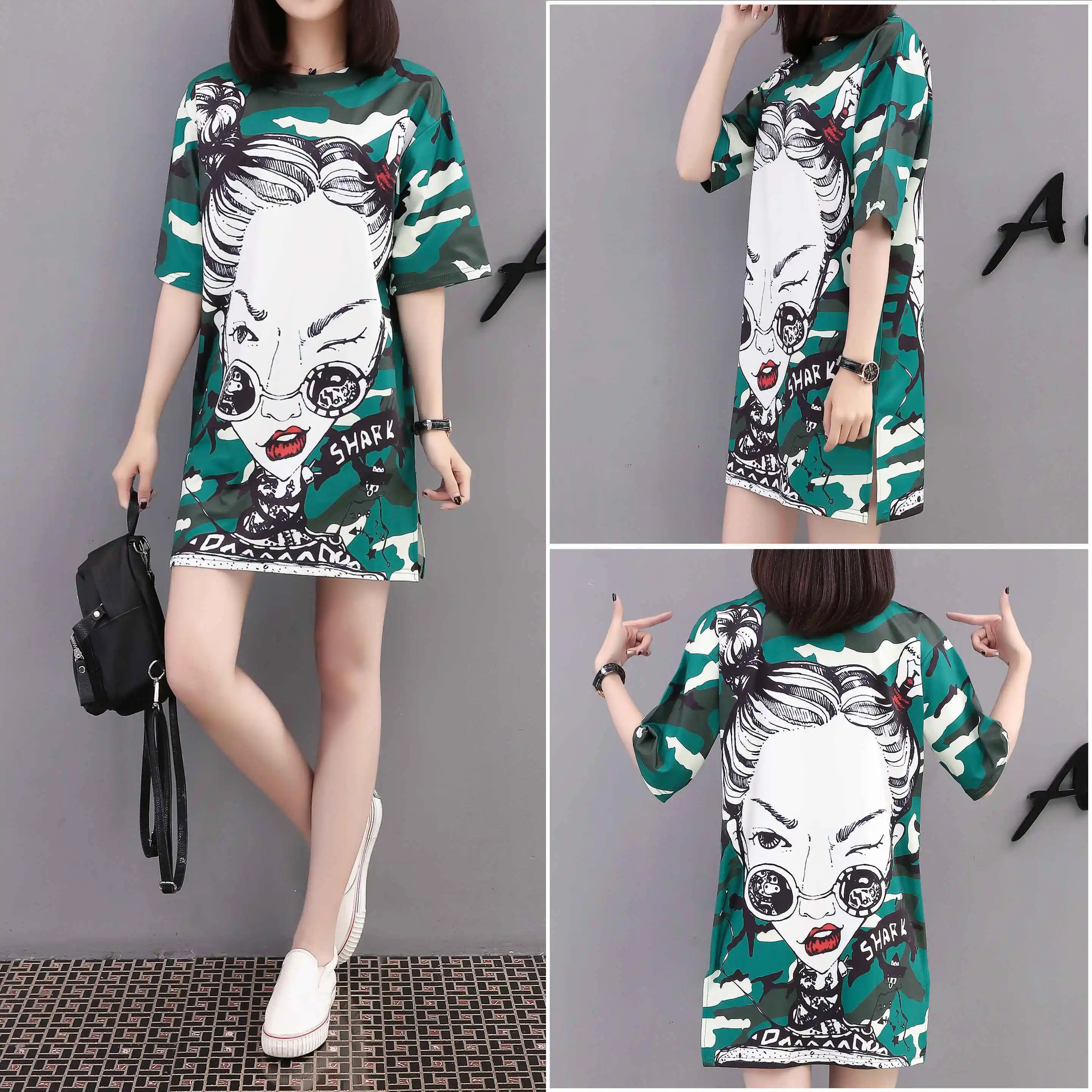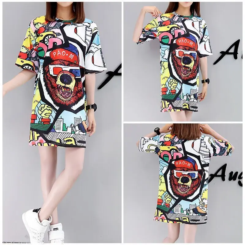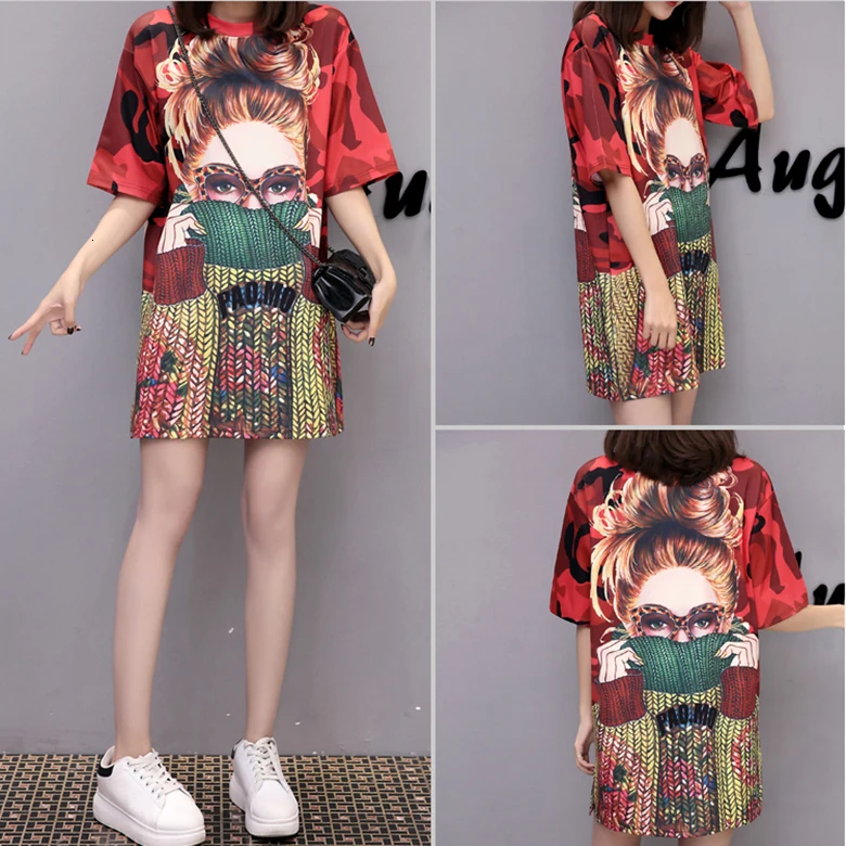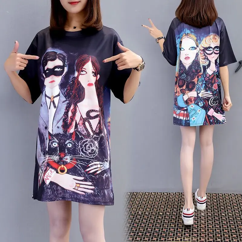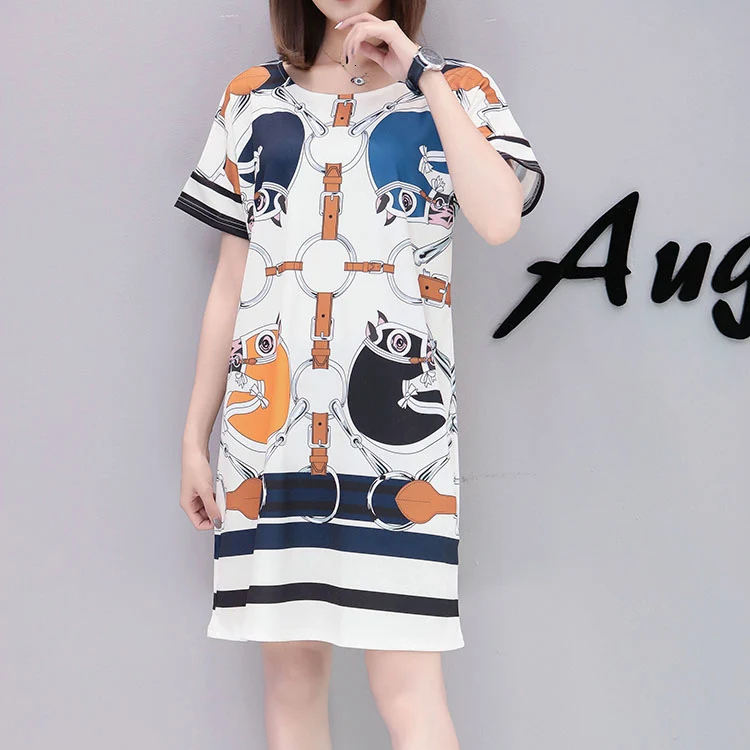 Женское платье-футболка QING MO, повседневное Хлопковое платье-футболка с круглым вырезом и коротким рукавом размера плюс, лето 2019