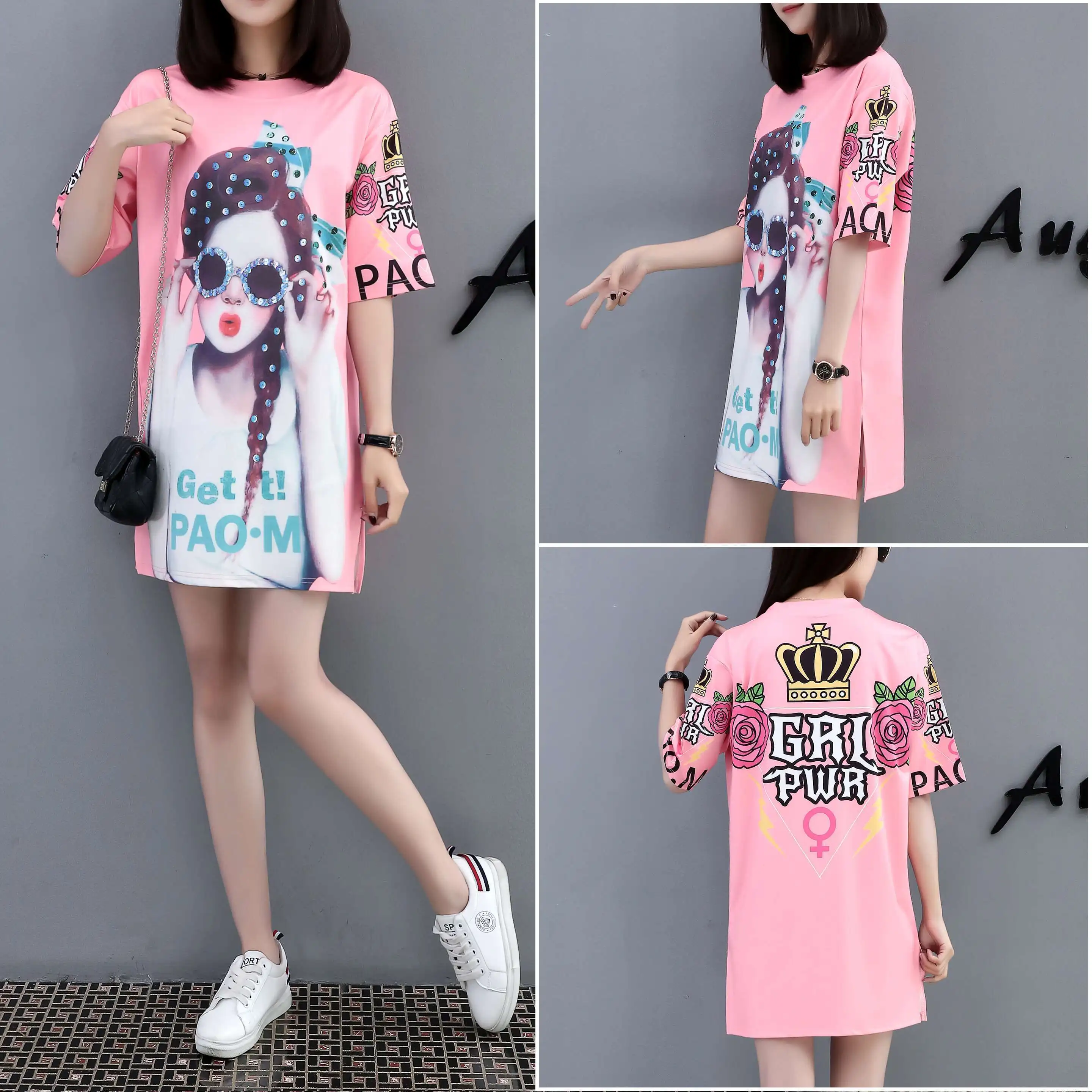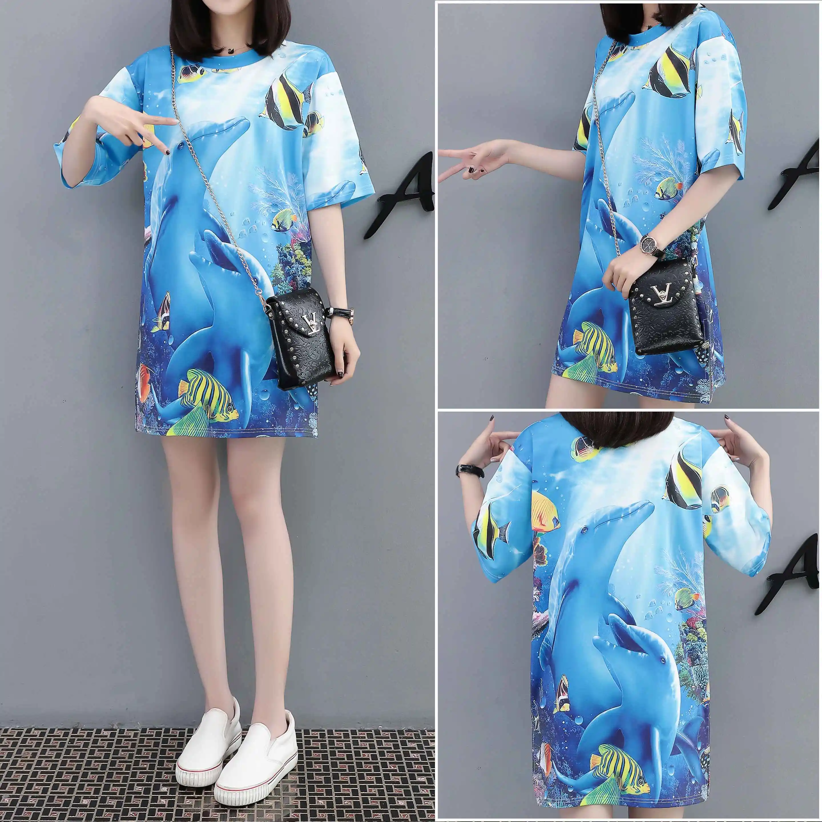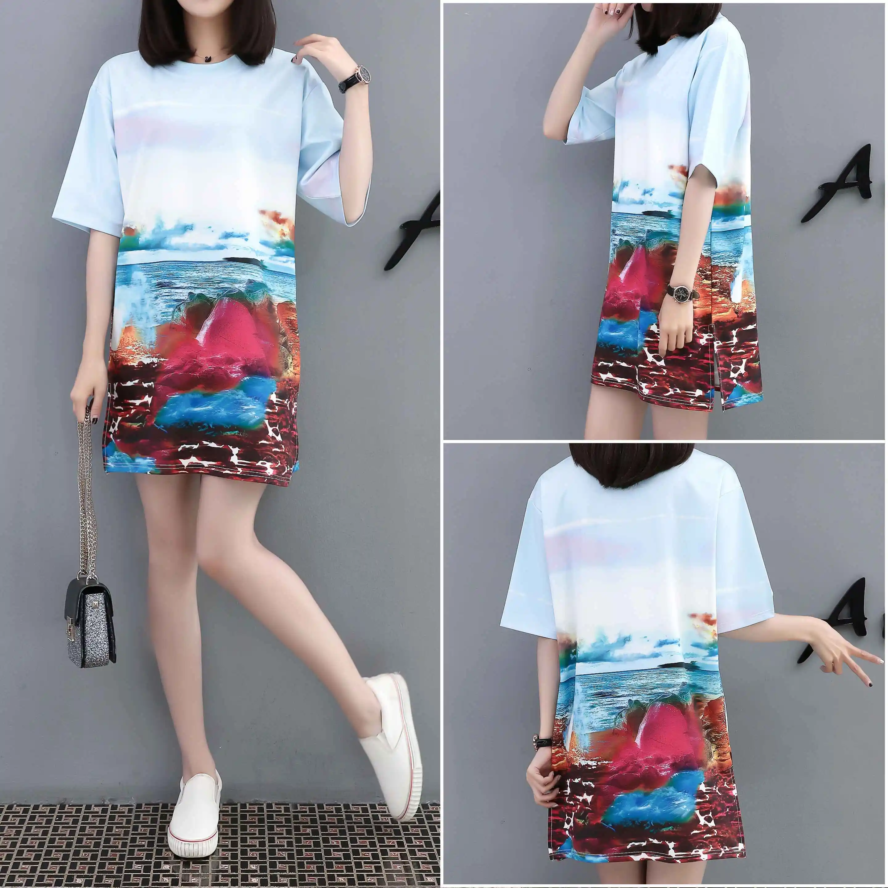 Женское платье-футболка QING MO, повседневное Хлопковое платье-футболка с круглым вырезом и коротким рукавом размера плюс, лето 2019