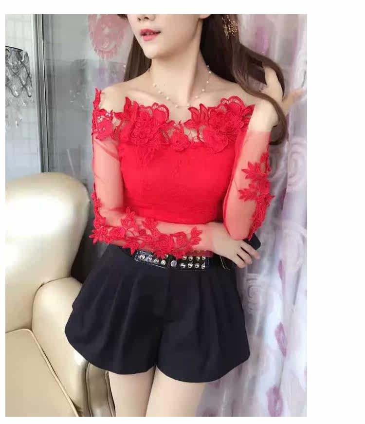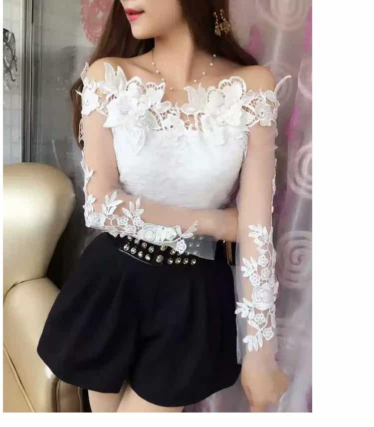 Женская кружевная блузка с длинным рукавом, сетчатая Блузка с вырезом лодочкой и цветочным принтом, весна-лето 2019