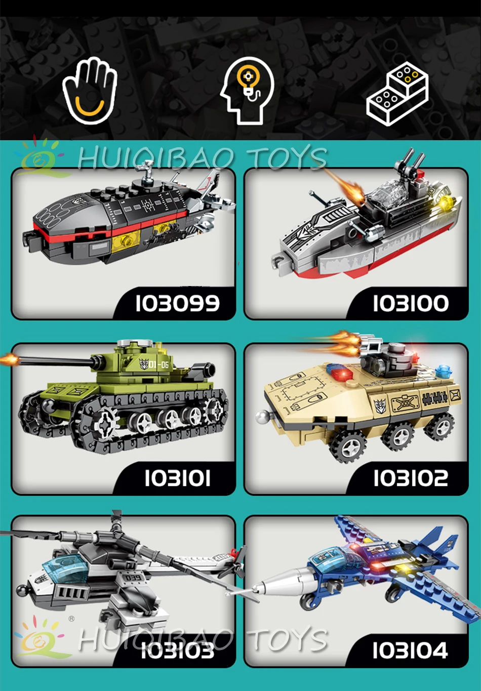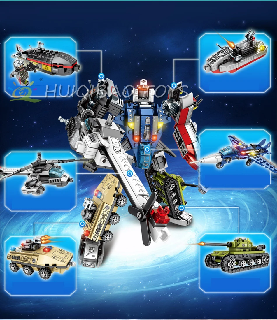 733 шт 6в1 колесница автомобиль деформация робот строительные блоки военные танки истребитель меха кирпичи игрушки Фигурки