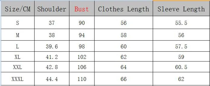 Таблица размеров топов