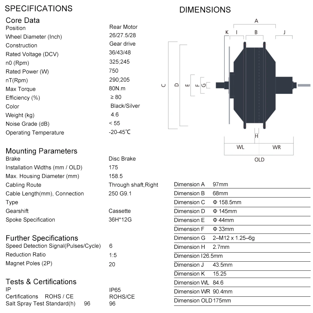 Этот мотор-концентратор постоянного тока подходит для велосипеда сЗадний выпадающий размер "175-190 мм" маховик ≦ 10 скоростей кассеты.