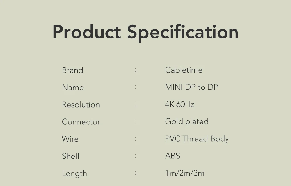 Кабель Mini DisplayPort от Cabletime к DisplayPort является незаменимым компаньоном для вашего Mac, ПК и планшета, оснащенного Mini DisplayPort. -Вход: мини-display Port / ThunderboltTM Port Male -Выход: DisplayPort Male -Macs, сделанные до 2010 года, не выводят аудио через Mini DisplayPort -Поддерживает разрешение до 4K x 2K -Совместимость DisplayPort 1,2