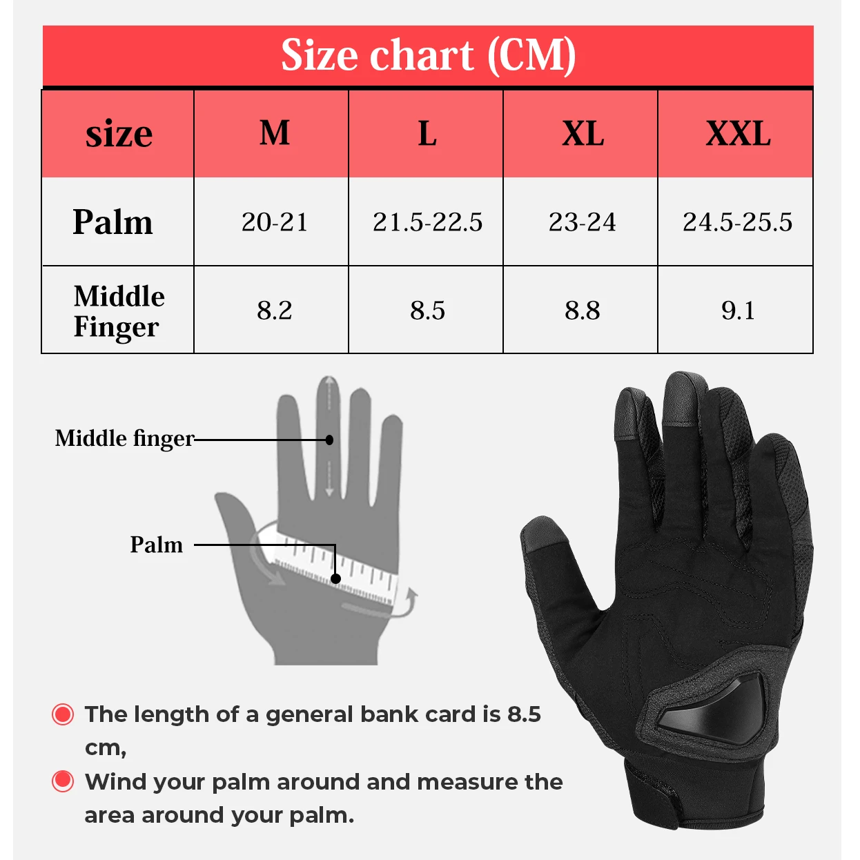 Товар: Мотоциклетные Перчатки Стиль: гонки Состояние: абсолютно новый Вес нетто: около 180 г Цвета: черный, красный, зеленый Сенсорный телефон Размер: M L XL XXL
