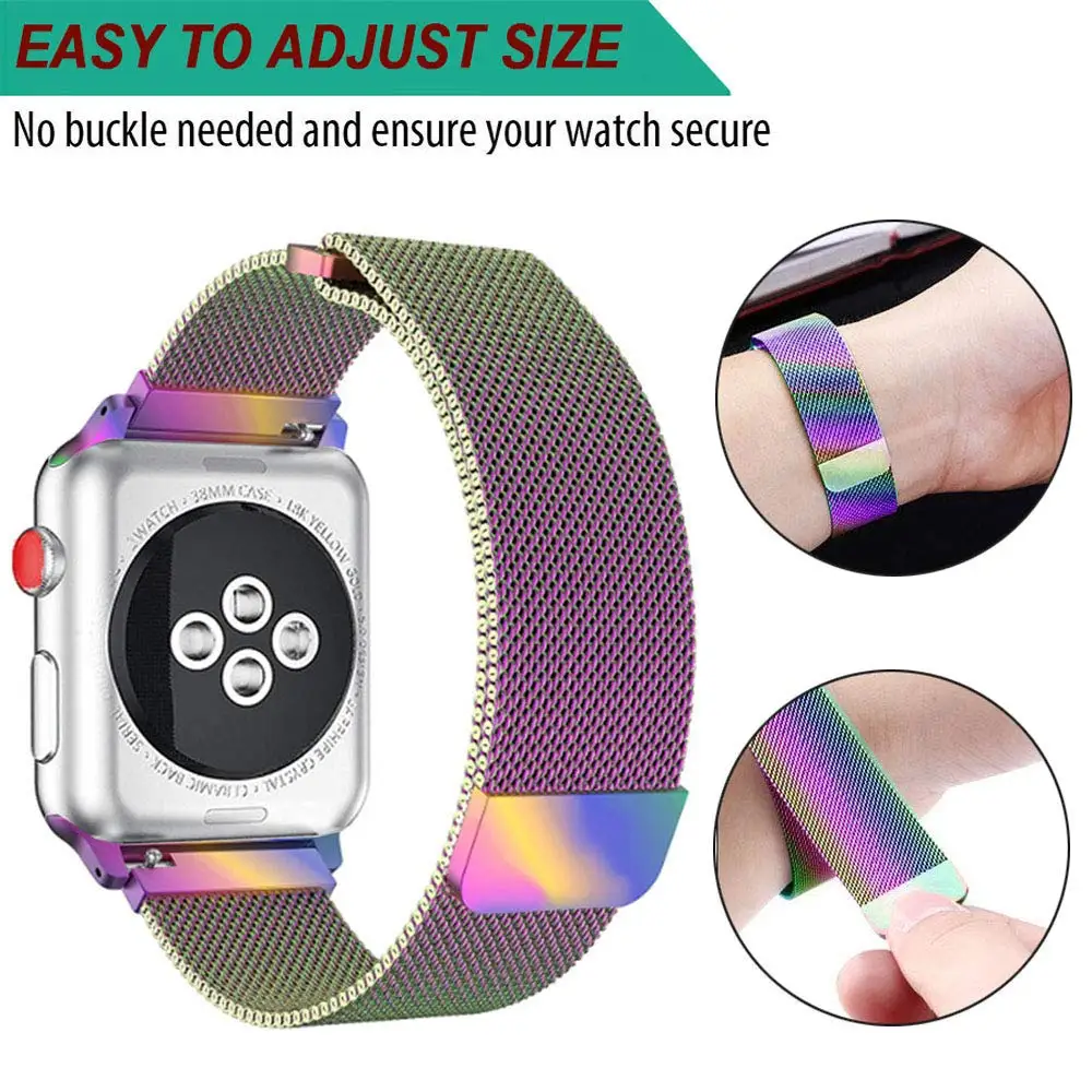 [Идеально подходит]: подходит для iWatch Apple Smart Watch Series 4/Series 3/Series 2/Series 1 38 мм 42 мм 40 мм 44 мм для женщин и мужчин. [Уникальный дизайн]: простые и свободные изгибы, регулируемый прочный магнитный с миланским плетением петли, без пряжки, очень легко снимать или заменять. [Прочная Магнитная застежка]: Персонализируйте часы Apple с помощью этого утонченного ремешка, удобно обертывается вокруг запястья и надежно блокирует часы Apple с прочной магнитной застежкой. [Удобно носить]: тонкое плетение Милана идеально подходит на запястье и очень удобно носить. Подходит для размера запястья: 38 мм подходит для 6,0 "-9,8", 42 мм подходит для 6,4 "-10,2". Вы можете регулировать размер в соответствии с вашим запястьем. [DELELE]: красочная ваша жизнь с отличным ремешком для часов.