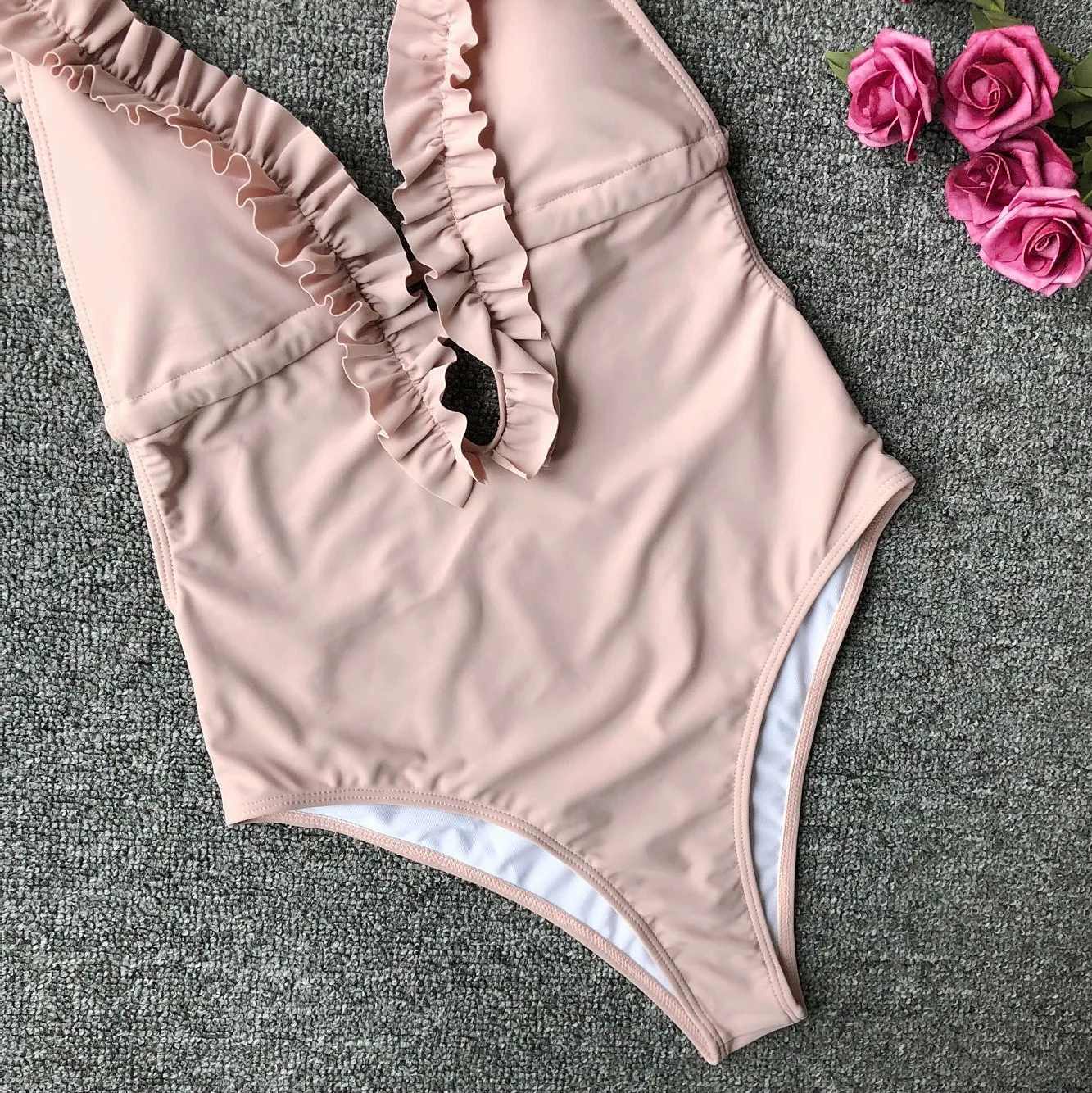 Летний сексуальный купальник бикини с высокой талией и рюшами, с открытой спиной, Женский цельный купальник, плюс размер, купальный костюм, монокини, купальник пуш-ап