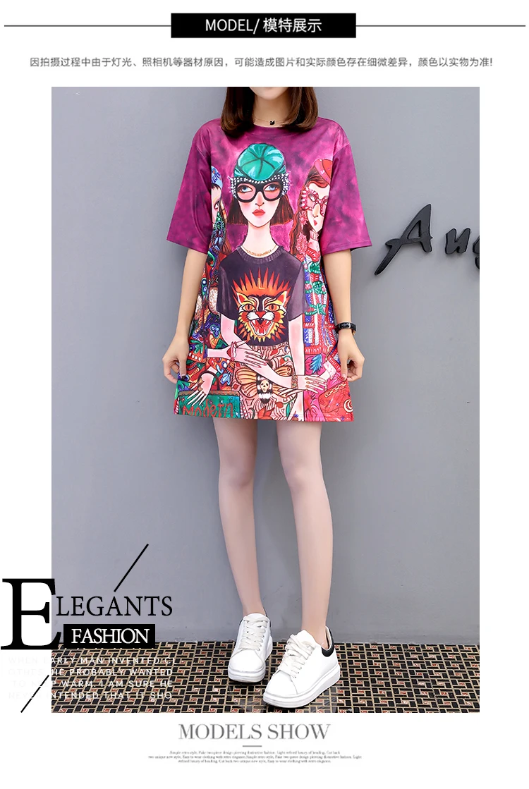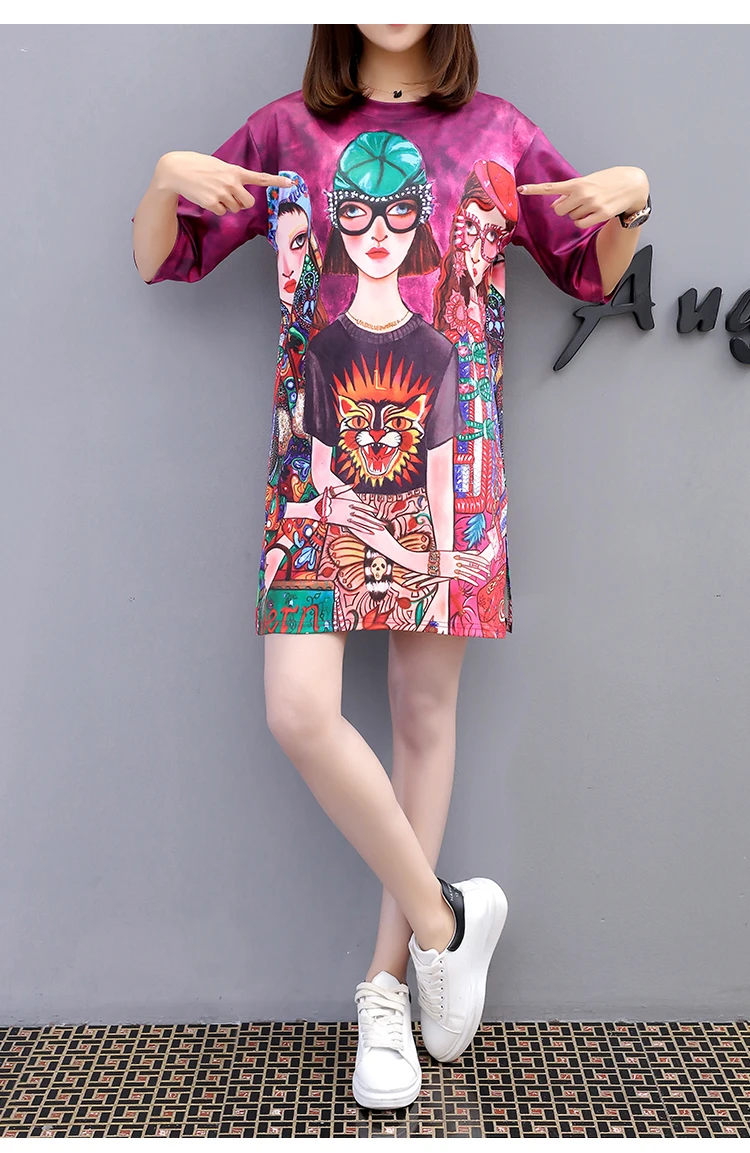 QING MO/фиолетовое платье с коротким рукавом, лето 2020, футболка с принтом, платье для женщин, топы с героями мультфильмов, женские футболки, свободное повседневное платье, Femme