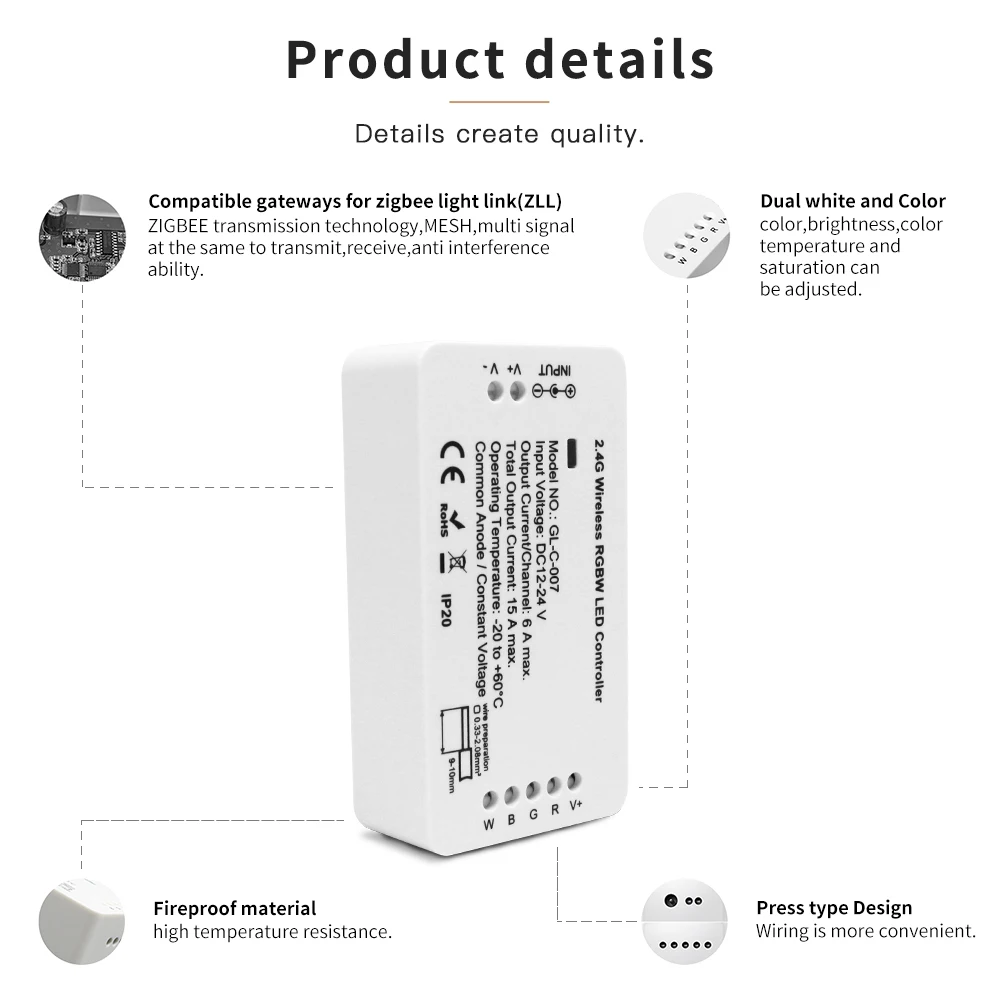 ● RGB CCT Беспроводная Регулировка яркости.Пожалуйста, обратите внимание, что для наших устройств zigbee требуются соответствующие шлюзы.