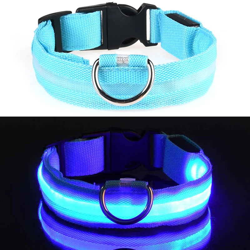 Нейлоновый светодиодный ошейник для собак ночной безопасности светится в