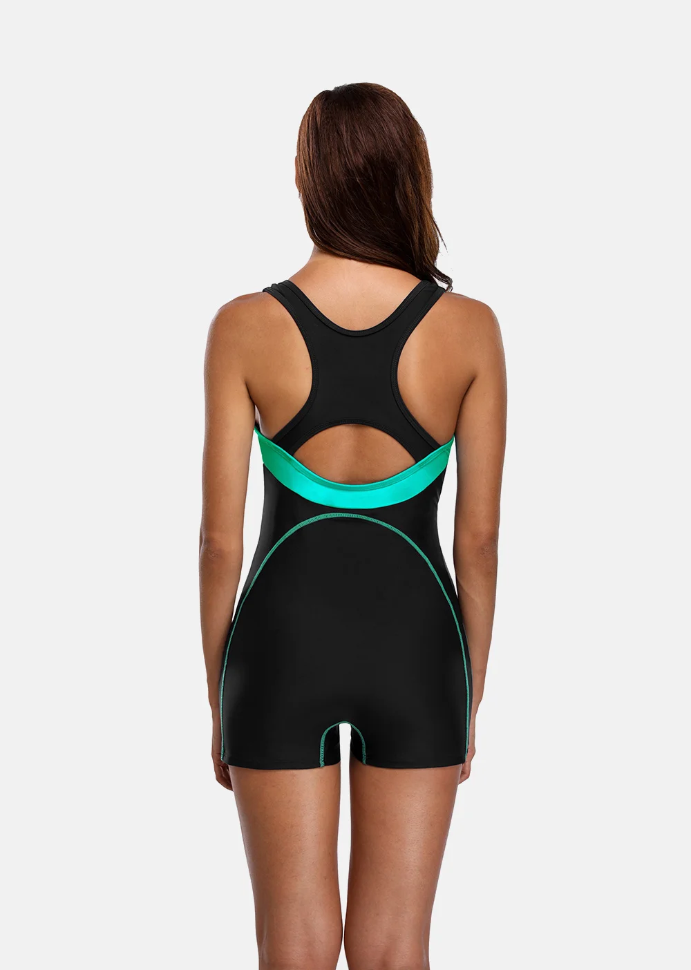 Аттракцион купальник женский цельный спортивный купальник лоскутный соревновательный купальник открытая спина короткие купальные костюмы горячая распродажа