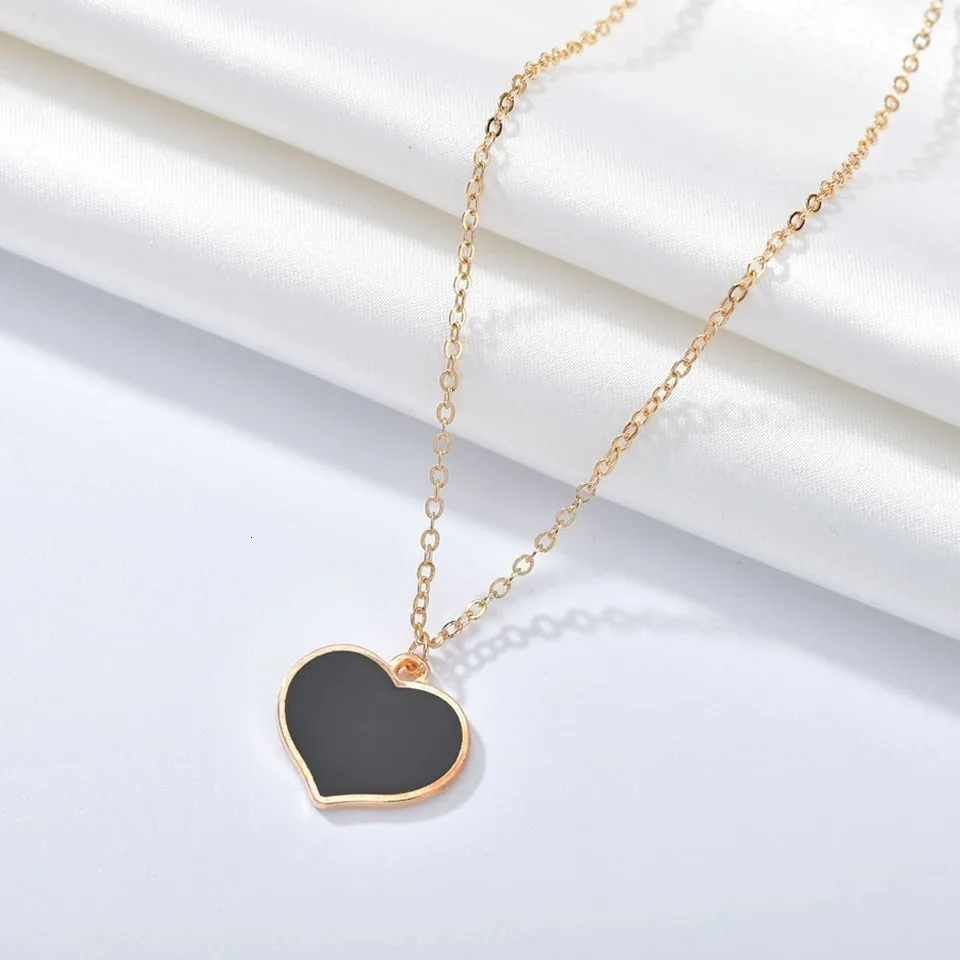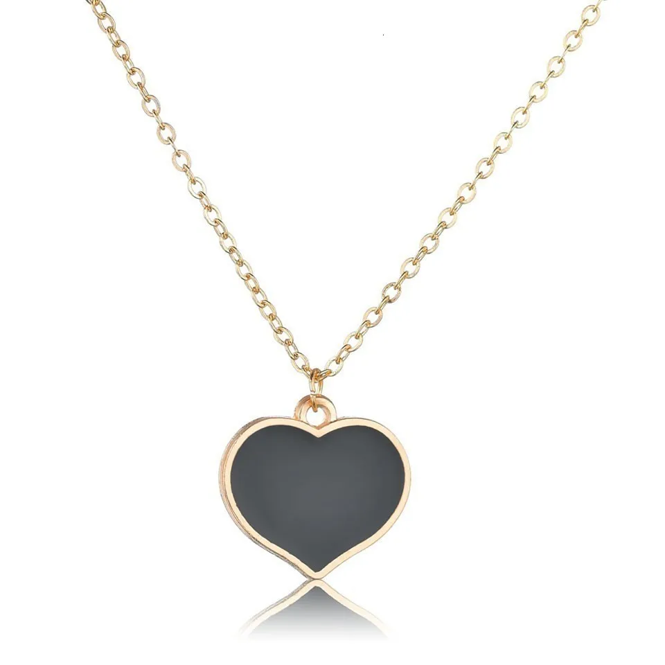 Женские модные золотые цепочки подвески и ожерелья Романтический черного цвета с подвеской в форме сердца с простой Стиль ручной работы свадебные украшения ожерелье