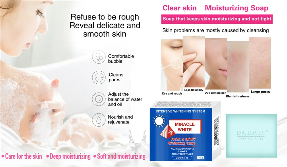 Этот продукт обогащен несколькими отбеливающими экстрактами, которые очищают кожу, отбеливают, увлажняют и сохраняют свежесть, успокаивают восхитительным ароматом. Он обладает мягкими свойствами, заметно очищает и отбеливает кожу. Направление: Намочите краску водой, мягко массируйте кожу, тщательно намочите краску водой. Используйте два раза в день, день и ночь. Состав: Сульфат натрия, кальций натрия, глицерин, хлорид натрия, Тетра натрия EDTA титановая этидроновая кислота, экстракт молока и запах, кожевая кислота Сакура, цветок, экстракт арбутина.