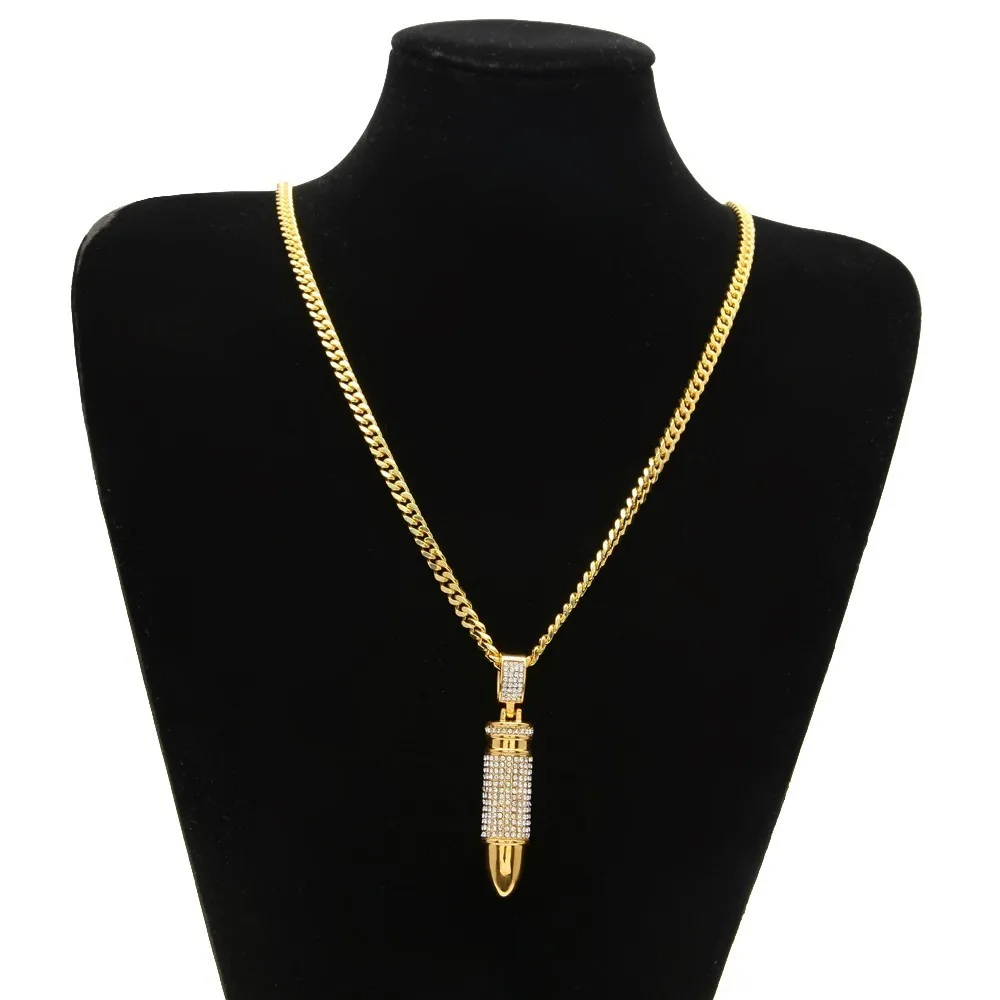TBTK пуля кулон микро-инкрустированные сверкающие Блестящие Стразы золотое ожерелье подвеска оптовая продажа хип-хоп стиль ювелирные изделия для мужчин