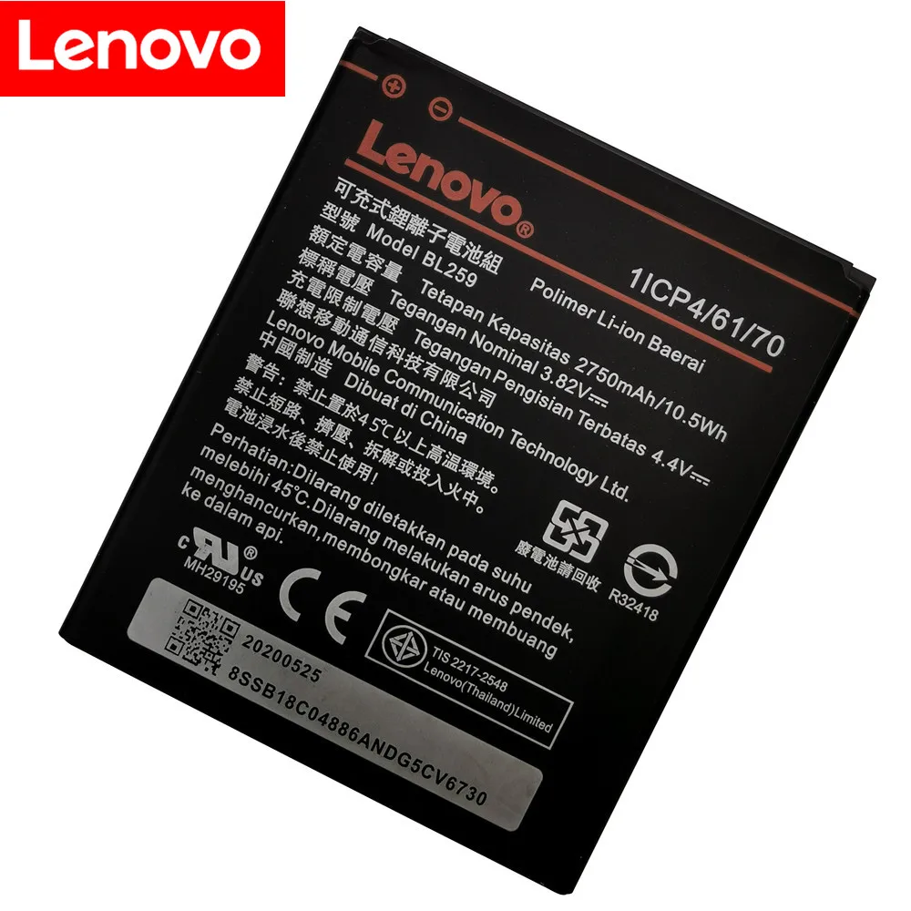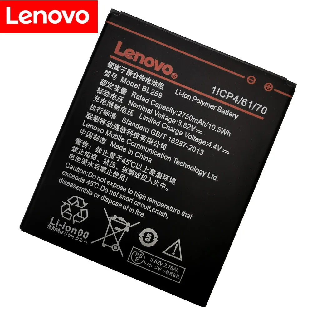 Аккумулятор 3,82 в 2750 мАч BL259 для Lenovo Lemon 3 3S K32C30 K32c36 Vibe K5 / K5 Plus