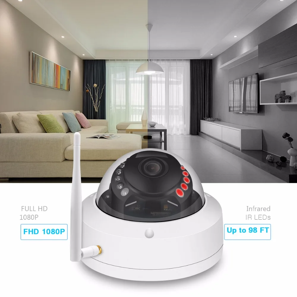 Встроенный 15 шт. ИК-светодиодный фильтр, отсекающий ИК-спектр, до 20 м (65 футов) ИК-расстояние для ночного видения.