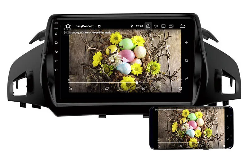 Большинство телефонов android и iPhone могут отображаться на одном и том же экране устройства belsee с помощью приложения easy-connect. Android через usb-кабель для зарядки и wifi может быть зеркальным. IPhone через wifi. Вы можете касаться и управлять любой операцией, такой как просмотр видео, навигация и т. д. через телефон android. Но iPhone просто отображает вещи на экране телефона, не может управляться на устройстве.