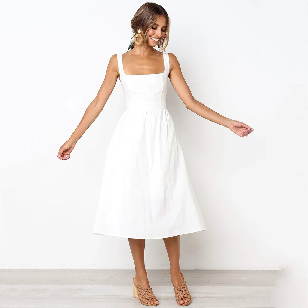 Женская одеждаВинтажное однотонное платье миди с карманами; Бандажные платья