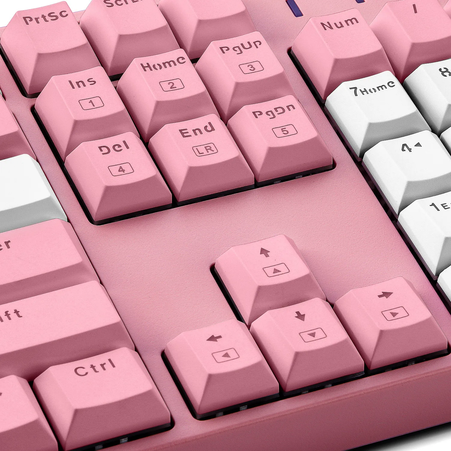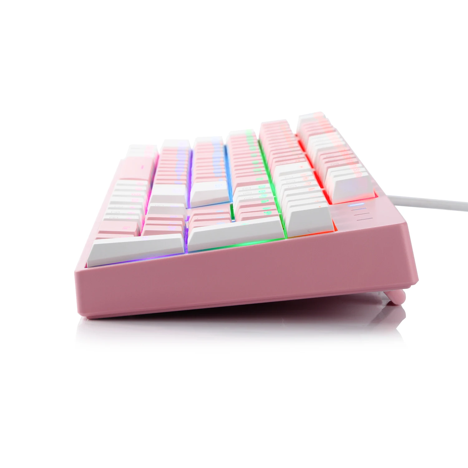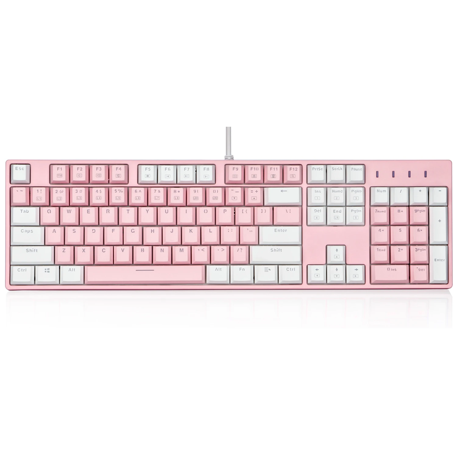 USB Проводная, американская раскладка 104 клавиши полноразмерная Механическая игровая клавиатура со специальным дизайном контрастного цвета розово-белые колпачки Долговечность и широкая совместимость-двойной колпачок для инъекций для длительного использования. Изготовлен из высококачественного АБС-пластика и металлического материала, с матовой текстурой, прочный и прочный.