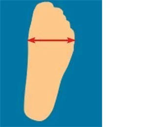 Полнота измеряется в самых широких точках носка с помощью сантиметра, как показано на рисунке.
