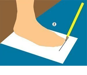 Лучше всего измерить и примерить обувь в вечернее время. С того дня нога «затоптала» и становится немного больше. 1. Положите лист бумаги так, чтобы одна сторона листа коснулась стены. Положите стопу так, чтобы каблук касался стены.