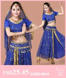 Женский костюм для танца живота, индийское платье для танцев, Болливуд, bellydance, 5 шт./компл., для выступлений, для взрослых, с монетами, аксессуары