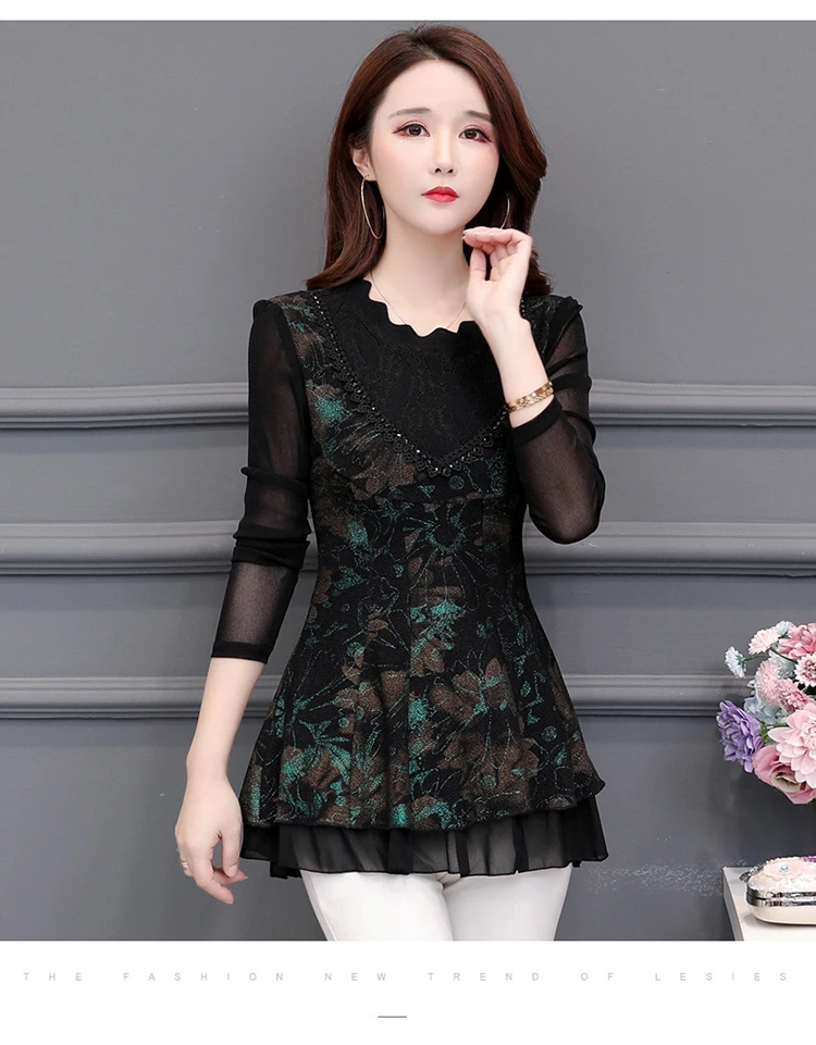 Базовая женская блузка с цветочным принтом, винтажный Топ-туника с сеткой, 4XL 3XL, 2019