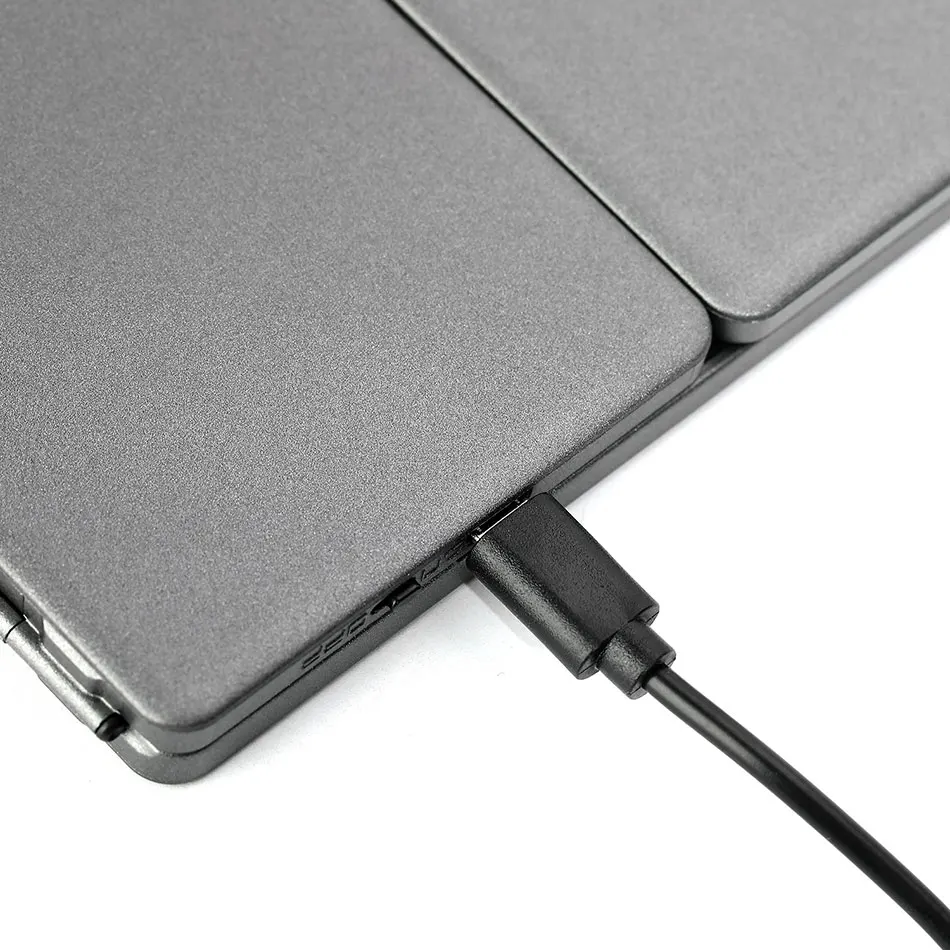 - 【Складная клавиатура BluetoothСтандартный размер обеспечивает точный, быстрый ввод текста, так же, как клавиатура рабочего стола, к которой вы привыкли. Тихие клавиши позволяют вам фокусироваться на вашей работе. Идеально подходит для путешествий и деловых поездок.