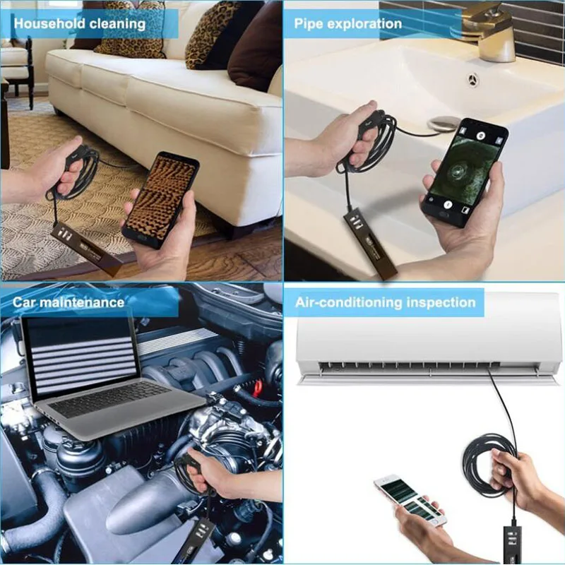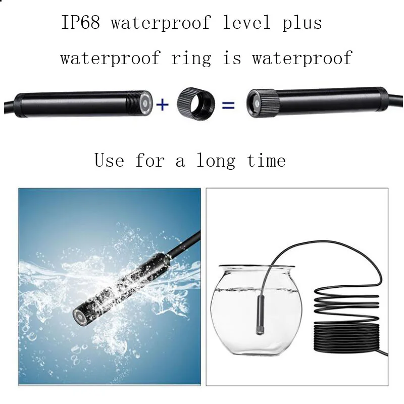 Поставляется с Wifi сигналом, нет необходимости подключаться к домашнему wifi, может использоваться в любом месте Разрешение HD 1200 P, Четкий просмотр IP68 Водонепроницаемый уровень, плюс водонепроницаемое кольцо, можно использовать под водой в течение длительного времени Эффективное фокусное расстояние составляет 3-10 см, а 8 светодиодных ламп с регулируемой яркостью можно легко обрабатывать в темных условиях. Поддержка компьютера: Ios/Android/Windous/tablet/notebook Спецификация: Диаметр линзы: 8,0 мм Разрешение: 1600*1200 Размер датчика: 1/5 дюйма Частота кадров: 30 кадров в секунду Фокусное расстояние: 70 градусов Расстояние: 4-10 см Водонепроницаемость: IP68 Лампа для экспозиции Рабочая температура: 0-70 градусов Источник света: 8 светодиодных ламп Длинный кабель: 2/5/7/10 м Мощность: встроенный аккумулятор