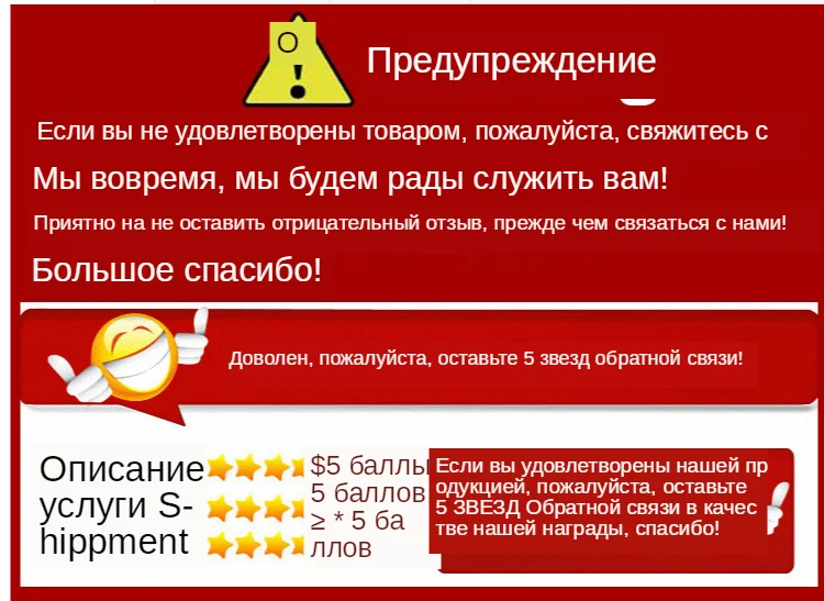 Если вы удовлетворены товаром, пожалуйста, поставьте оценку 5 звезд. Если у вас есть вопросы, пожалуйста, свяжитесь с нами, но не ставьте оценку ниже. Большое спасибо!