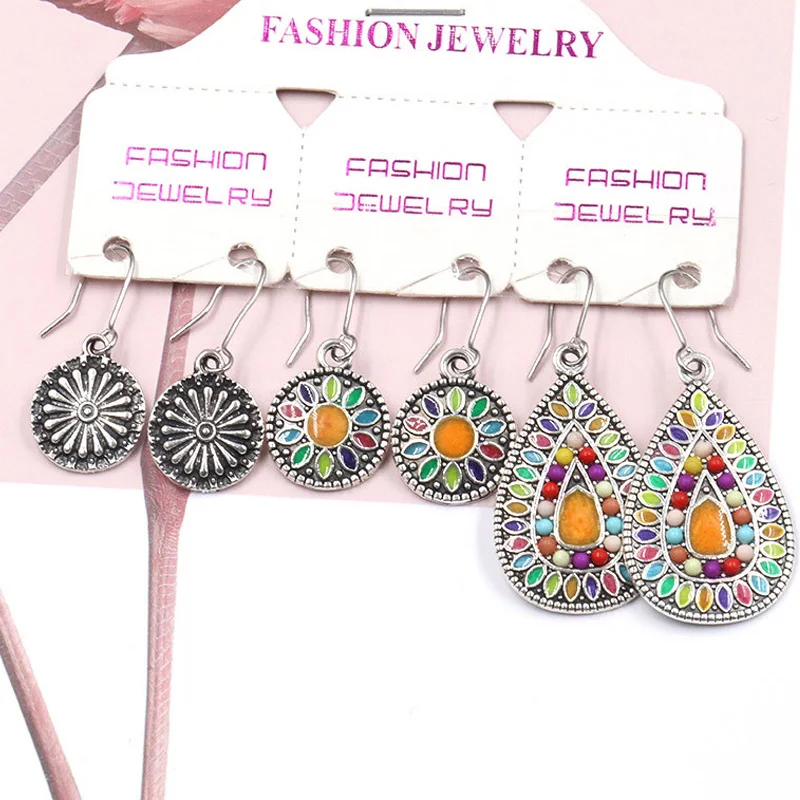 Многократные Серьги Этнические богемные Висячие капли воды ювелирные аксессуары для женщин антикварные висячие серьги 3 пар/уп. винтажные