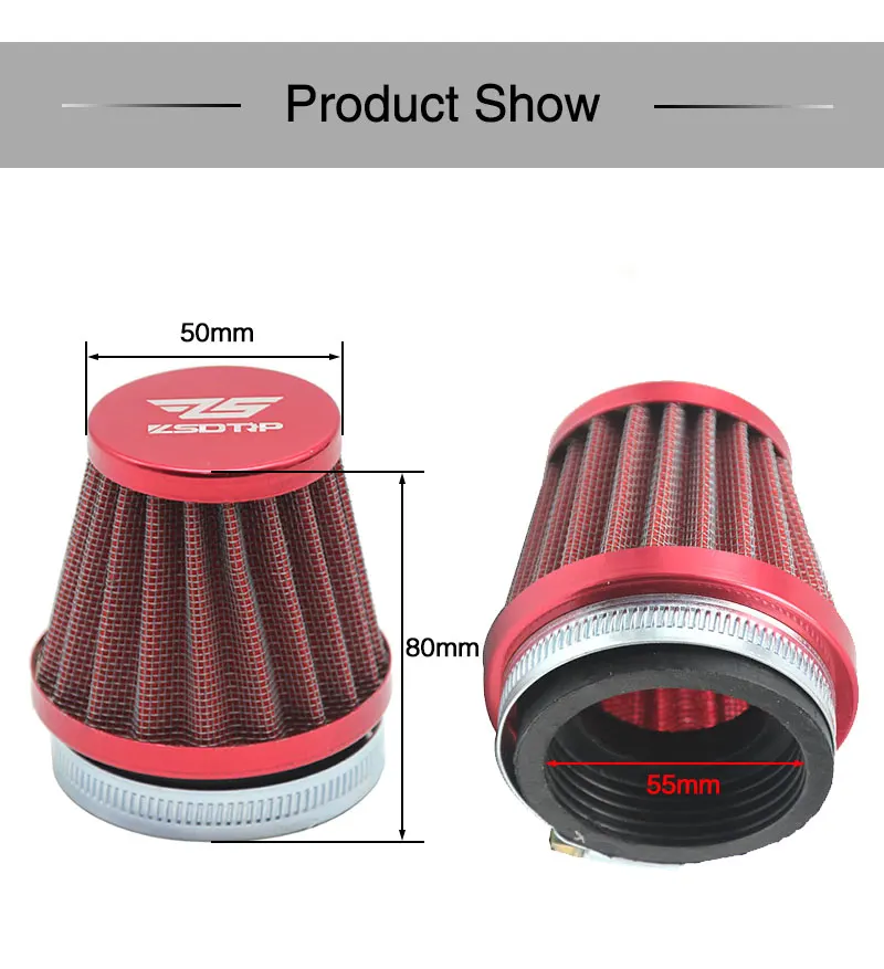 ZSDTRP Универсальный 55 мм мотоциклетный воздушный фильтр подходит для PWK KOSO KEIHIN OKO MIKUNI 32 мм 34 мм карбюратор конический очиститель Замена
