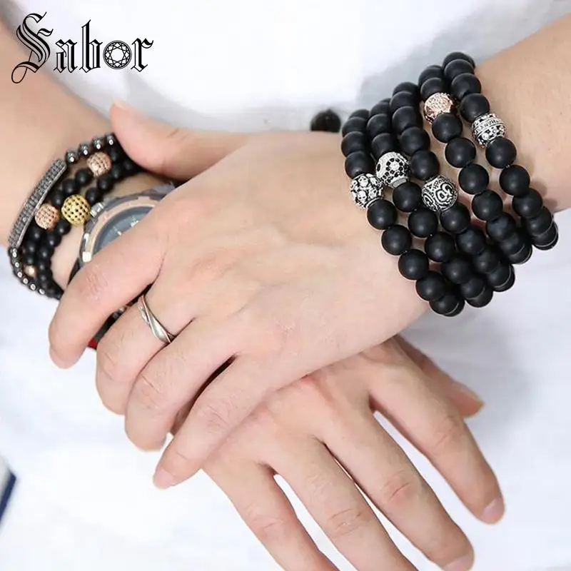 Высококачественный браслет из бисера для женщин и мужчин с разноцветными бусинами, очаровательные браслеты, черный матовый браслет из оникса, мужские ювелирные украшения