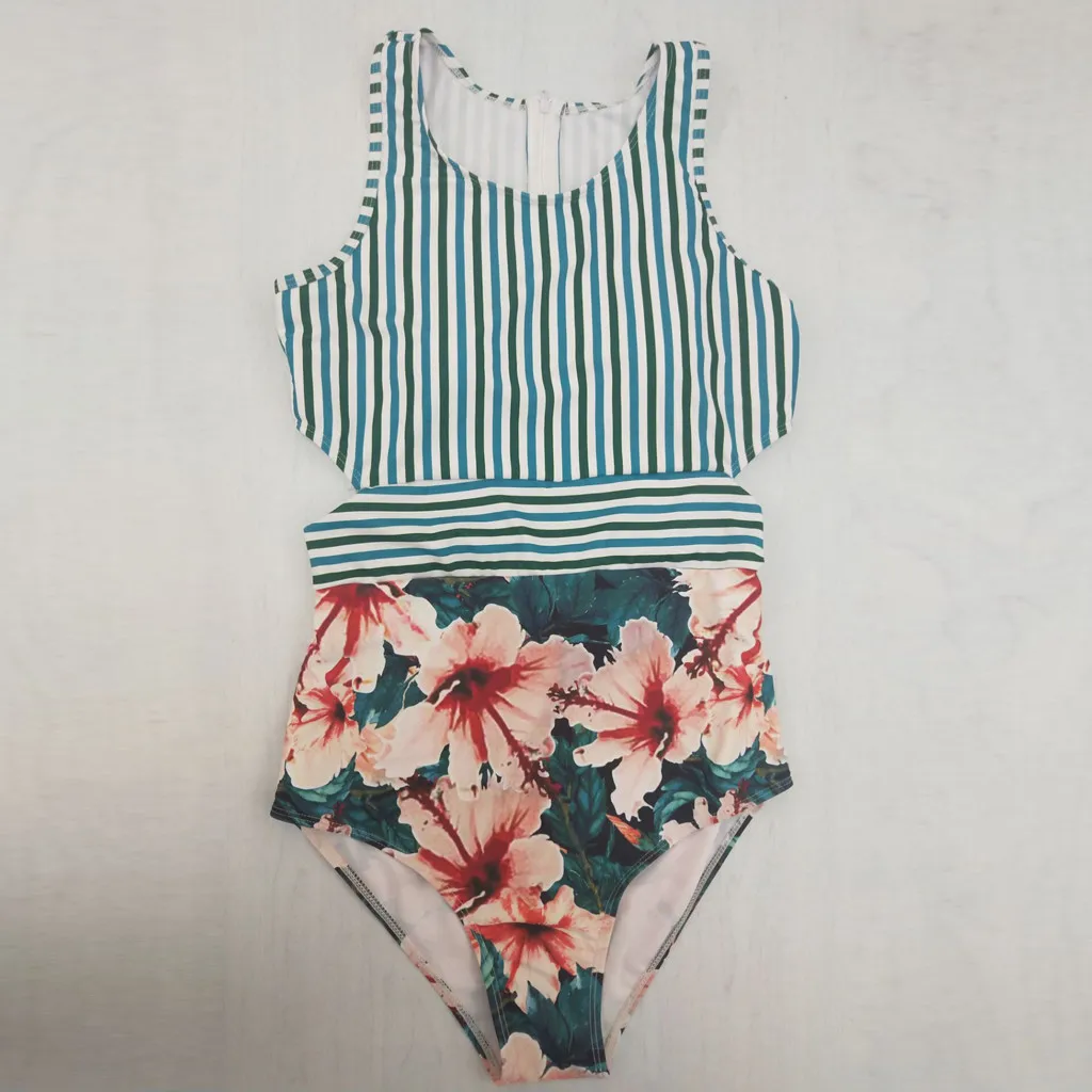 Женский купальник-бикини с полосками и застежкой-молнией, купальный костюм, пляжная одежда, большие размеры