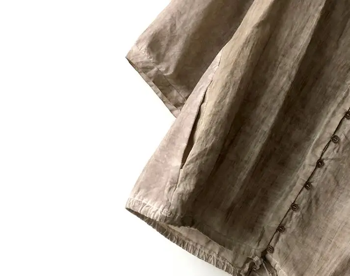 Для женщин хлопковая льняная блузка с капюшоном 2019 сезон: весна–лето, новинка, защита от солнца, рукав «три четверти» в Корейском стиле большой размер, свободного кроя рубашка yoyikamomo