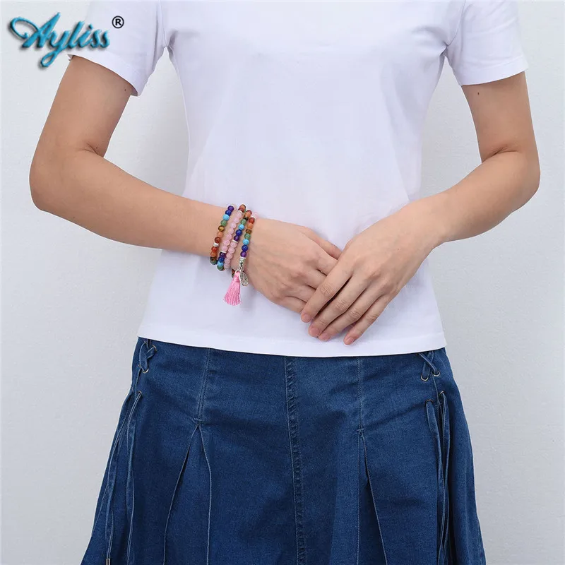 Стиль: унисекс 108 Молитва бисера тибетский Будда буддийские стрейч Мала Браслет, Ожерелье, Материал: 6 мм Аметист/розовый кварц/тигровый глаз/зеленый авантюрин/вулканический камень/белый бирюзовый Говлит и 7 различных драгоценных камней: фиолетовый нефрит, синтетический синий нефрит, синий хавлит бирюзовый, синетический зеленый нефрит, тигровый глаз, Желтый авантюрин, красный агат
