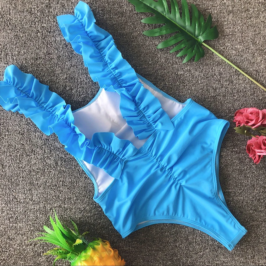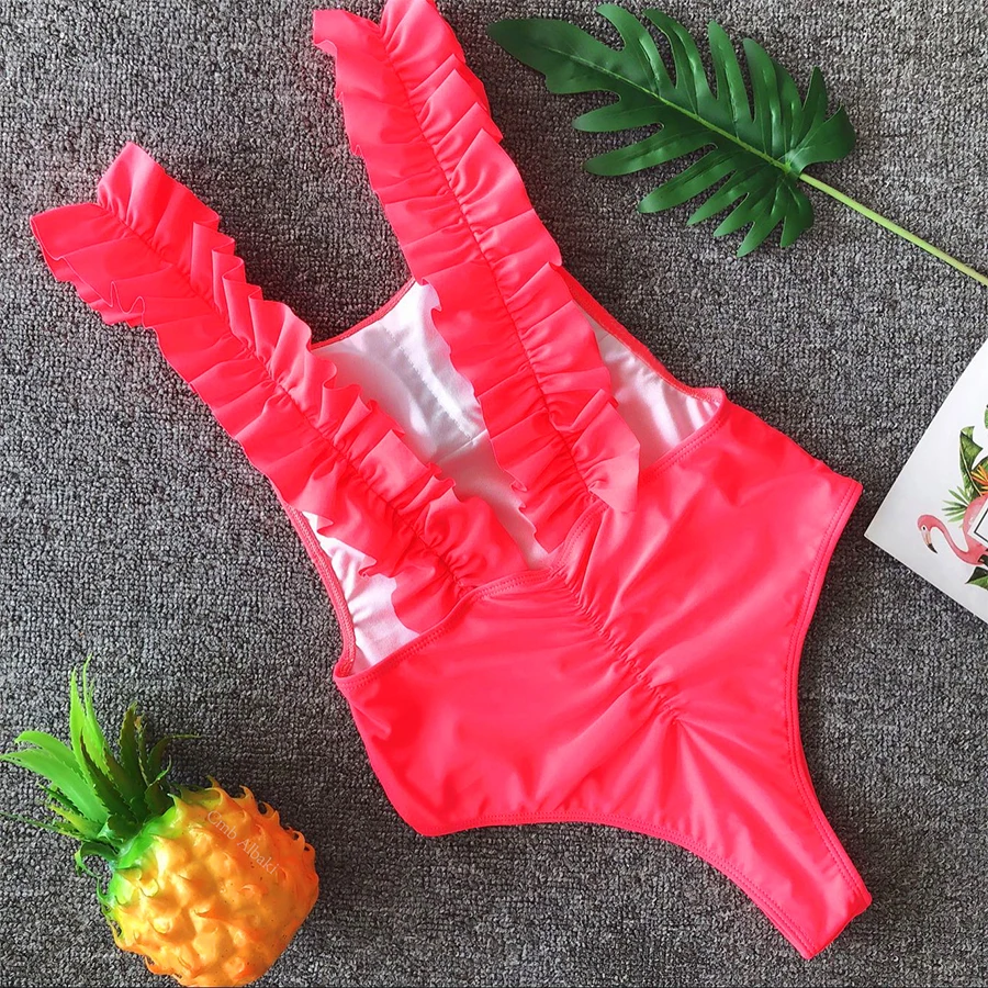 Женский купальник с рюшами BINAND, однотонный, с открытой спиной, с глубоким вырезом, сексуальный, пуш-ап, нейлон, без косточек, облегающий, женский купальник