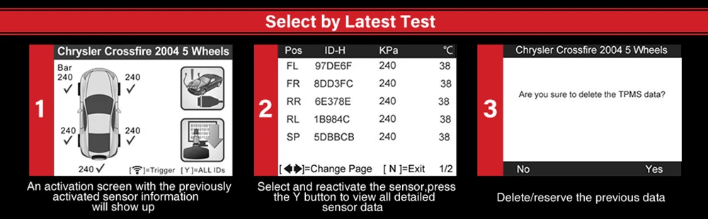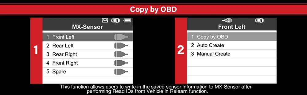 TS501 может предоставить дополнительные специальные датчики и подключить кабель OBDII к ECU транспортного средства, чтобы предложить несколько вариантов программирования, включая идентификаторы датчика клона или auto create ID, или ручные идентификационные номера датчика записи без повторного изучения датчика, необходимого для позиционирования датчика.