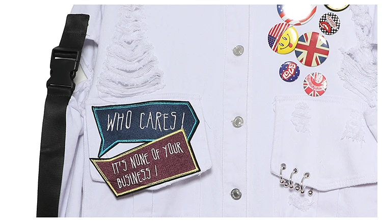 QING MO, белые ковбойские комбинезоны, женские джинсы с дырками, боди с пряжкой и коротким рукавом, цельные штаны, джинсовые комбинезоны с буквами, ZLD847A